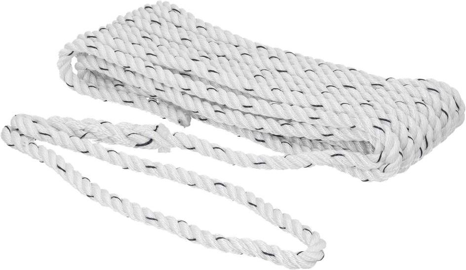 Lina cumownicza z zaplecioną pętlą do bezpiecznego cumowania łodzi. Z trzech splotek z odpornego na promieniowanie UV poliestru.