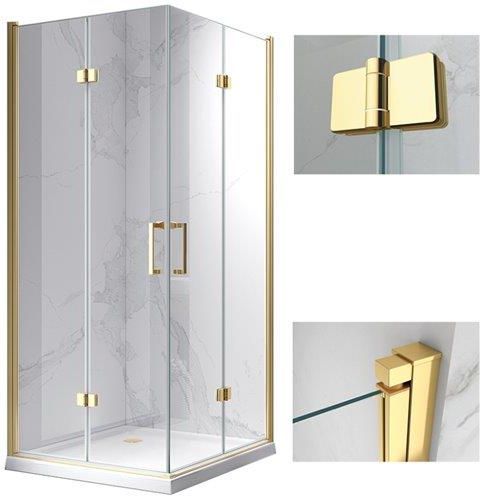 Złota składana kabina prysznicowa prostokątna 90x100 Hydrosan KZ13AG. Kabina drzwi łamane do środka lub na zewnątrz. Kabina prysznicowa drzwi składane do środka kabiny100x90.