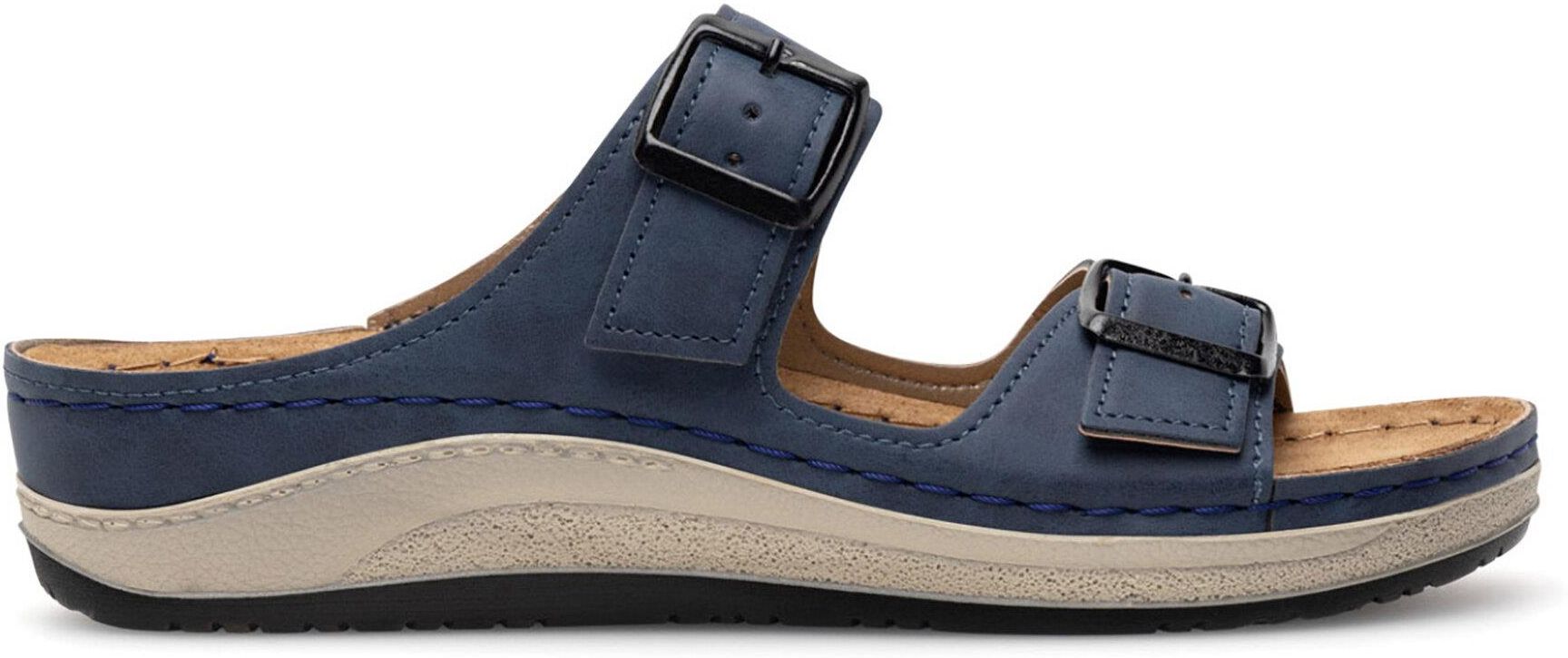 Odkryj komfort codziennego użytkowania z granatowymi klapkami marki Inblu! Idealne dla każdej kobiety, która ceni sobie połączenie wygody z casualowym stylem. Te płaskie klapki zostały wykonane z wysokogatunkowego syntetyku, co gwarantuje trwałość i łatwość w pielęgnacji. Ponadto praktyczne zapięcie na sprzączkę umożliwia idealne dopasowanie do stopy. Wybierz Inblu i ciesz się letnimi spacerami w komfortowych butach, które pasują do wielu stylizacji! Włoska marka butów Inblu, która w latach 70. XX wieku zrewolucjonizowała rynek obuwniczy do dziś serwuje wysokiej jakości buty, które oferują komfort i wygodę przez cały dzień. Marka Inblu w swojej bogatej ofercie ma przede wszystkim sandały, klapki i kapcie, które zadowolą każdą kobietę oczekującą swobody, lekkości i luzu. Klasyczne fasony często przełamane są delikatnymi ozdobami, które nadają butom oryginalnego wyglądu. Każdy model posiada skórzaną wkładkę, dzięki czemu zapewniony jest komfort noszenia. Do tego buty wykonane są z ekologicznych materiałów, a także mogą pochwalić się wysokiej klasy jakością. Poznaj obuwie Inblu!