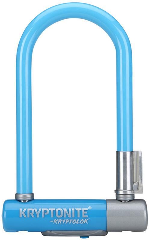 KRYPTOLOK Mini 7 8.2x17.8cm uchwyt niebieski Zabezpieczenia rowerowe Kryptonite są znane i cenione na całym świecie. Najwyższa klasa ochrony roweru przeszkodzi w kradzieży twojego oczka w głowie. Zabezpieczenia Kryptonite mają na dodatek dożywotnią gwarancję. Grubość szekli to 13 mm stali hartowanej odpornej na cięcia. Idealne do zabezpieczenia rowerów czy skuterów. 12.7mm wzmocniony pałąk stalowy jest odporny na wszelkiej maści ręczne narzędzia Nowy, wzmocniony zamek umieszczony centralnie przeciwdziała próbom podważania Opatentowana, nowa szekla została wydłużona, żeby zapobiec przekręceniu i wyrwaniu czy przecięciu końcówek pałąka z zamka. Wyposażone w mocowanie do ramy Flexframe-U 2 wytrzymałe klucze, odporne na zginanie czy łamanie ze wzmocnionej stali nierdzewnej w zestawie Nowa przesuwana osłona chroniąca przed zabrudzeniem Wzmocnione owalne zapięcie Zapięcie rowerowe Kryptonite typu u-lock KryptoLok Mini-7 Color Series jest dostępne w 4 kolorach: perłowy biały, czerwony, niebieski oraz pomarańczowy. Wymiary: 8,2 cm x 17,8 cm (3,25 ”x 7”) Waga: 1,13 kg (2,5 funta)