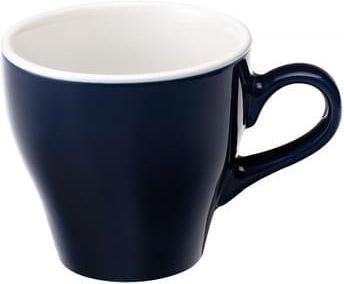 Porcelanowa filiżanka Loveramics Tulip do Cafe Latte w kolorze granatowym. Połączenie klasycznej linii i nowoczesnych rozwiązań. Pięknie wygląda i świetnie spełnia swoją rolę. Specjalna konstrukcja ścianek pomaga utrzymywać odpowiednią temperaturę napoju, a zaokrąglone dno pozwala wydobywać pełny smak i aromat kawy. Całość wykonana została z wysokiej jakości porcelany. Brak spodka w zestawie. Wymiary: Filiżanka - średnica: 9 cm, wysokość: 9 cm; Pojemność: 280 ml