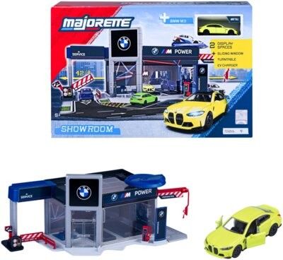 Majorette BMW Showroom Set + 1 autonZestaw Showroom na licencji marki BMW z metalowym samochodem marki BMW, talerz obrotowy dla samochodu. przesuwane przednie okno, otwierane drzwi i szlabany, strefa przygotowania pojazdu, 3l+ EAN: 3467452079959