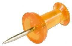Półprzezroczyste plastikowe pinezki w kształcie kołków. Różne kolory: niebieskim, pomarańczowym, czerwonym, różowym, przezroczystym i zielonym. Pudełko zawiera 30 szt. Wymiary: 215x89 mm Opakowanie: pudełko
