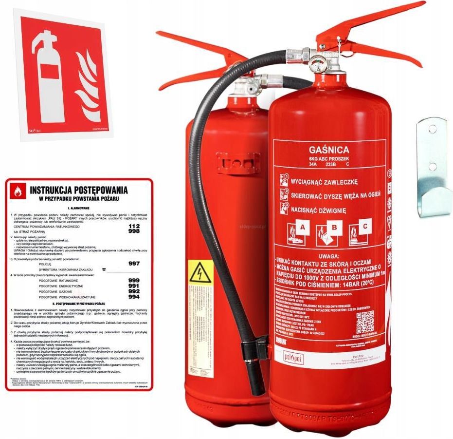 Mobiak Zestaw: Gaśnica Proszkowa Gp6X 6Kg Abc Z Wieszakiem, Znakiem Gaśnicy I Instrukcją Pożarową Warka