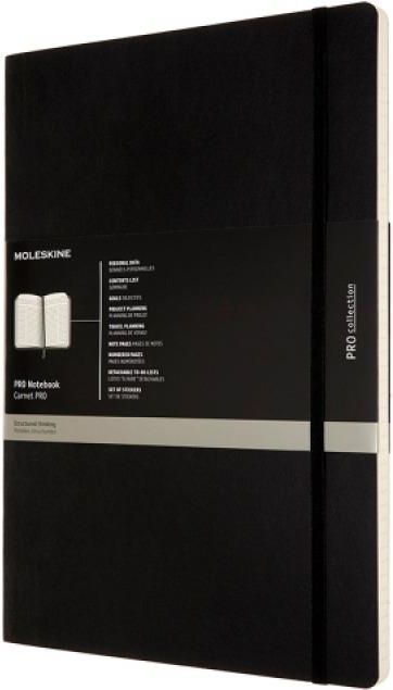 Notes Moleskine PROFESSIONAL A4 (21x29,7 cm), czarna miękka oprawa, 192 strony NOTATNIKI PRO Uporządkowane myślenie, każdy profesjonalista powinien być produktywny w pracy i ruchu. FUNKCJE miękka okładka zaokrąglone narożniki, elastyczne zamknięcie zakładka wstążka podwójna kieszeń wewnętrzna z …