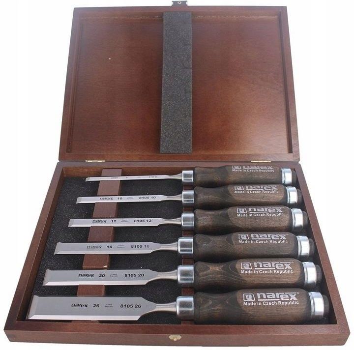 ZESTAW DŁUT NAREX PROFI Z FAZOWANIEM BOCZNYM 6, 10, 12, 16, 20, 26 (853053) 853053, 6-cio elementowy zestaw dłut stolarskich prostych z fazowaniem bocznym z serii Narex Profi. Opracowanie: firmaSharg®