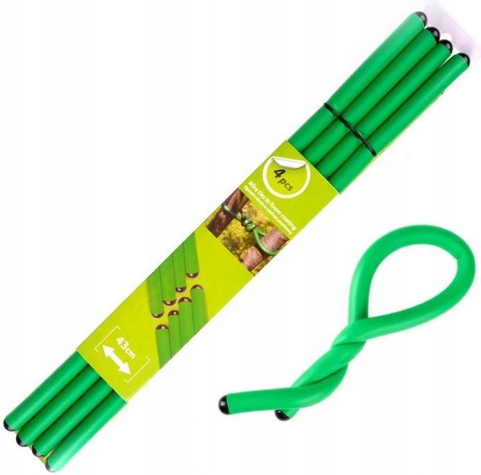 opaski z drutu w otulinie piankowej giętkie, z "efektem pamięci" ułożenia delikatne dla roślin pozwalają w łatwy sposób połączyć ze sobą różne przedmioty do użytku w domu, ogrodzie, garażu kolor: zielony długość jednej opaski: 43 cm średnica jednej opaski: 1,4 cm ilość opasek w opakowaniu: 4 szt.