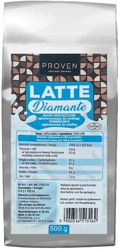 Proven Mleko Intstant Drinks Latte Diamante Granulare 500g Warka