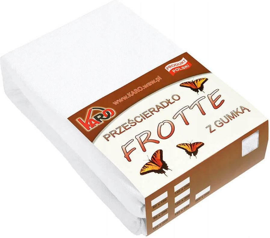 Prześcieradło frotte z gumką 140x200 białe 001 KARO – Komfort i trwałość na co dzień Prześcieradło frotte z gumką w rozmiarze 140x200 cm, w klasycznym białym kolorze, marki KARO to doskonały wybór dla osób ceniących sobie wygodę i jakość. Gruby materiał o gramaturze 200 g/m² zapewnia wyjątkową trwałość i miękkość, a praktyczna gumka gwarantuje idealne dopasowanie do materaca. Zalety prześcieradła frotte z gumką KARO Wyjątkowa miękkość i komfort snu – Materiał frotte o wysokiej gramaturze 200 g/m² jest delikatny dla skóry, pozwalając na komfortowy sen każdej nocy. Idealne dopasowanie dzięki gumce – Elastyczna gumka na całym obwodzie sprawia, że prześcieradło idealnie przylega do materaca 140x200 cm, zapobiegając zsuwaniu się podczas snu. Wytrzymałość i odporność na pranie – Gruby materiał zachowuje swoje właściwości nawet po wielu praniach, co przekłada się na długotrwałe użytkowanie produktu. Uniwersalny biały kolor – Klasyczna biel łatwo komponuje się z każdym rodzajem pościeli i wnętrza sypialni. Łatwość pielęgnacji – Prześcieradło można prać w pralce, a szybkoschnący materiał ułatwia codzienne użytkowanie. Dlaczego warto wybrać prześcieradło frotte KARO? Prześcieradło frotte z gumką 140x200 marki KARO to połączenie funkcjonalności i estetyki. Dzięki wysokiej gramaturze materiału gwarantuje ono nie tylko komfort, ale także trwałość na lata. Produkt idealnie sprawdzi się w każdej sypialni, zapewniając wygodę i estetyczny wygląd łóżka. Gumka utrzymuje prześcieradło na miejscu, eliminując konieczność ciągłego poprawiania. Specyfikacja produktu Wymiary: 140x200 cm Materiał: Frotte, 200 g/m² Kolor: Biały Model: KARO 001 Wykończenie: Gumka na całym obwodzie Przeznaczenie: Materace o wymiarach 140x200 cm Instrukcja pielęgnacji: Pranie w pralce do 40°C Prześcieradło frotte z gumką, Rozmiar: 140x200 cm. Skład tkaniny: 82% bawełna, 18% poliester. Materiał: frotte. Gramatura: 200 g/m2. Zakład prześcieradła wynosi ok. 15 cm i nie jest wliczany do rozmiaru. Prześcieradło przeznaczone jest na materace o wysokości do 15 cm, a zakład liczony jest na rogu prześcieradła. Wyprodukowany w Polsce.