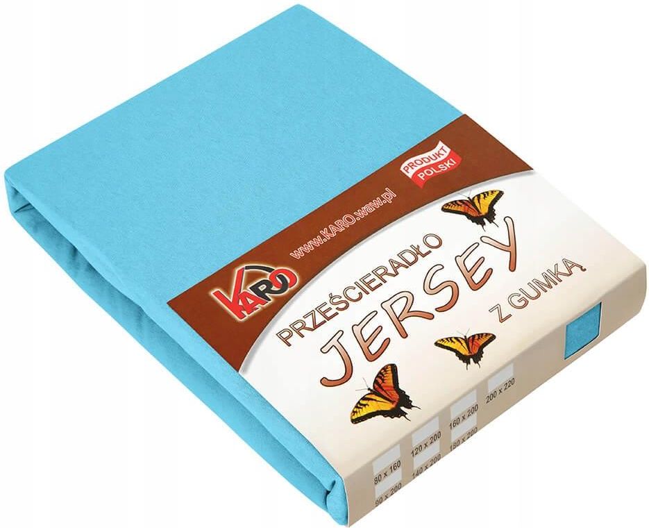 Prześcieradło jersey z gumką 140x200 turkusowe 030 grube 150g/m2 KARO jest miękkie i przyjemne w dotyku, a spanie na nim to czysta przyjemność. Szeroka gama kolorystyczna pozwoli na dopasowanie koloru prześcieradła do każdej pościeli. Z kolei wysoka jakość zastosowanych materiałów sprawi, że długo będziesz cieszyć się wyborem prześcieradła KARO. Prześcieradło zachowuje swój fason i utrzymuje intensywny kolor nawet po wielu praniach. Rozmiar: 140x200 cm. Skład tkaniny: 100% bawełna, Materiał: jersey - lekko rozciągliwy i niewymagający prasowania, dzięki czemu jest wyjątkowo wygodny w użytkowaniu. Gramatura: 150 g/m2. Zakład prześcieradła wynosi ok. 15 cm i nie jest wliczany do rozmiaru. Prześcieradło przeznaczone jest na materace o wysokości do 15 cm, a zakład liczony jest na rogu prześcieradła. Dzięki bokom z narożnymi zaszewkami, profilującymi prześcieradło do kształtu materaca oraz gumce poprowadzonej w tuneliku produkt doskonale dopasowuje się i układa na materacach o różnej grubości. Przepis konserwacji: prać w temperaturze do 40°C, nie wybielać, prasować w temperaturze do 150°C, nie czyścić chemicznie, suszyć w stanie rozwieszonym. Prześcieradła jersey z gumką KARO występują w wielu rozmiarach tj. m.in.: 60x120, 70x140, 80x160, 90x200, 120x200, 140x200, 160x200, 180x200, 200x220 w ponad 40 kolorach. Produkt własny naszego sklepu, wyprodukowany w Polsce. Indeks katalogowy: 207451 Kod kreskowy: 5902837101668