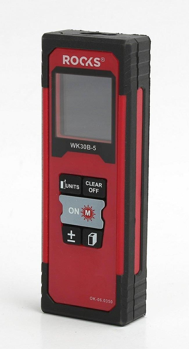 DALMIERZ LASEROWY ROOKS, UŁATWI CI PRACĘ PRZY KAŻDYCH POMIARACH. POZWALA DOKONYWAĆ POMIARÓW W RÓŻYCH JEDNOSTKACH, DODATKOWO POSIADA FUNKCJE DODAWANIA I ODEJMOWANIA POMIARÓW. POMIARY 3D: DŁUGOŚĆ, SZEROKOŚĆ, WYSOKOŚĆ, POWIERZCHNIA I OBJĘTOŚĆ, FUNKCJE TRYGONOMETRYCZNE.