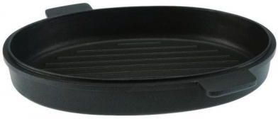 Owalna patelnia o wymiarach: szerokość 28 cm, długości 42 cm oraz głębokości 7 cm. Na dnie posiada żebrowanie przypominające ruszt grilla. Świetnie sprawdzi się podczas przygotowywania potraw dla osób dbających o zdrową dietę. Ze względu na swój owalny kształt jest polecana do smażenia ryb. …