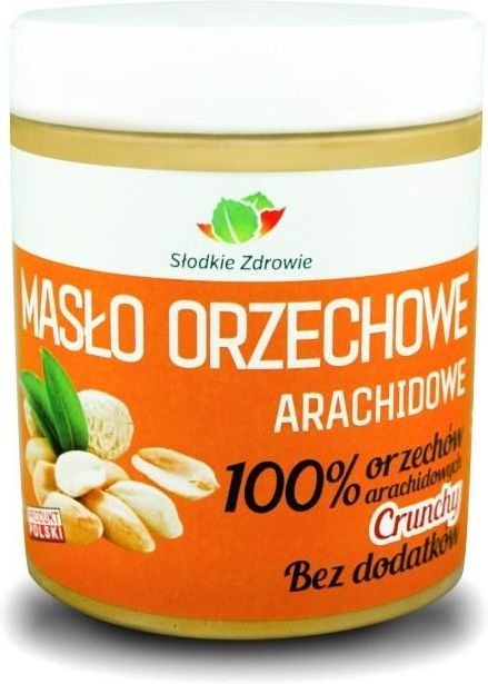 MASŁO ORZECHOWE 100% PEANUT BUTTER 1kg CRUNCHY CO WYRÓŻNIA NASZ PRODUKT **CZYSTA KOMPOZYCJA**: 100% prażonych orzechów arachidowych bez dodatku soli, cukru i oleju palmowego - maksymalna naturalność w każdej łyżce. **NAJWYŻSZA WARTOŚĆ BIAŁKOWA**: 26g białka w 100g produktu plus cenne nienasycone kwasy tłuszczowe, magnez, potas i witamina E. **WSZECHSTRONNE ZASTOSOWANIE**: Idealny do deserów, śniadań, dań mięsnych, sosów i koktajli - jeden produkt, nieskończone możliwości kulinarne. **WERSJA CRUNCHY**: Delikatne kawałki orzeszków zapewniają wyjątkową teksturę i intensywny smak prawdziwych orzechów. NATURALNA MOC ORZECHÓW BEZ SZTUCZNYCH DODATKÓW! Ten wyjątkowy krem orzechowy arachidowy w wersji crunchy składa się w 100% z prażonych orzechów arachidowych, bez dodatku soli, cukru czy oleju palmowego. Delikatne kawałki orzeszków zapewniają niepowtarzalną teksturę i autentyczny smak, który zachwyci nawet najbardziej wymagających smakoszy naturalnych produktów. BOGACTWO SKŁADNIKÓW ODŻYWCZYCH DLA TWOJEGO ZDROWIA! Orzechy arachidowe zawierają najwięcej białka spośród wszystkich orzechów - aż 26g w 100g produktu. Obecne w kremie nienasycone kwasy tłuszczowe wspierają obniżenie poziomu złego cholesterolu, a wysoka zawartość magnezu, potasu i witaminy E wzmacnia pracę mózgu i całego organizmu. UNIWERSALNOŚĆ ZASTOSOWANIA W KAŻDEJ KUCHNI! Ten kremowy skarb doskonale komponuje się zarówno z potrawami słodkimi jak i wytrawnymi. Idealnie nadaje się do tostów, naleśników, kremów do ciast, sosów do dań mięsnych czy pożywnych koktajli, nadając każdej potrawie wyjątkowy, orzechowy aromat i gładką konsystencję. POLSKA JAKOŚĆ W PRAKTYCZNYM OPAKOWANIU! Produkt polskiego dystrybutora PPHU JS Słodkie Zdrowie dostarczany jest w wygodnym opakowaniu PET o pojemności 1000g. Wysokiej jakości opakowanie zapewnia świeżość produktu i łatwość przechowywania, gwarantując długotrwałe zachowanie wszystkich walorów smakowych i odżywczych. SPECYFIKACJA Stan: Nowy Rodzaj: masło Marka: Słodkie Zdrowie Nazwa handlowa: masło orzechowe Waga: 1000 g EAN (GTIN): 5904730307505 Waga produktu z opakowaniem jednostkowym: 1.2 kg Smak: Orzechowy Produkt nie zawiera: cukru, konserwantów, oleju palmowego