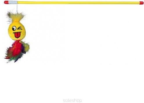 Zabawka dla kota. Wędka z długim sznurkiem. Na końcu sznurka przymocowana jest mała, pluszowa zabawka z uśmiechniętą miną. Koty mogą rozpoznać w niej małego ptaszka, dzięki puszystym, barwnym piórkom. Wędka firmy TRIXIE, w rękach opiekuna, może dać kotu mnóstwo zabawy w chwytanie i polowanie na …