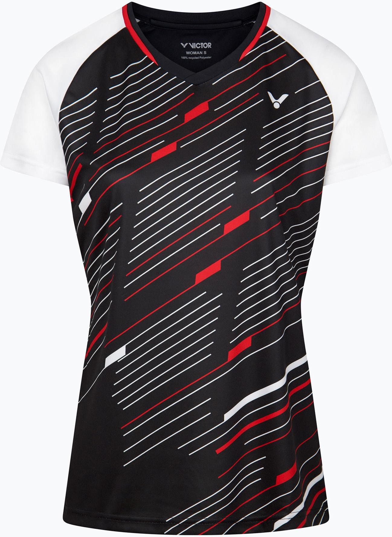 Damska koszulka w kolorze czarno-białym, z kolekcji Team na sezon 2024/25. Materiał tej koszuli wykonany jest w 100% z przetworzonych butelek PET. Wyposażona w system odprowadzania wilgoci PerfectDry. 100% poliester pochodzący z recyklingu Technologia PerfectDry Wyjątkowy komfort: Wykonana z wysokiej jakości materiałów, zapewniających oddychalność i elastyczność, dzięki czemu możesz swobodnie poruszać się na każdym etapie treningu. Styl i elegancja: Projektanci marki Victor stworzyli koszulkę, która nie tylko doskonale pasuje do każdej figury, ale także prezentuje się niezwykle modnie i elegancko, sprawiając, że będziesz się wyróżniać na treningu. Doskonała jakość: Koszulka została starannie wykonana z myślą o wymagających sportowcach, co gwarantuje jej trwałość i odporność na intensywne treningi oraz częste pranie. Dzięki zastosowaniu innowacyjnych technologii w produkcji, koszulka wspomaga termoregulację ciała i odprowadza wilgoć na zewnątrz, co zapewnia uczucie świeżości nawet podczas najbardziej intensywnych treningów. Uniwersalność: Doskonała zarówno do treningów na siłowni, jak i do różnego rodzaju aktywności sportowych na świeżym powietrzu, od biegania po jogę czy badminton.
