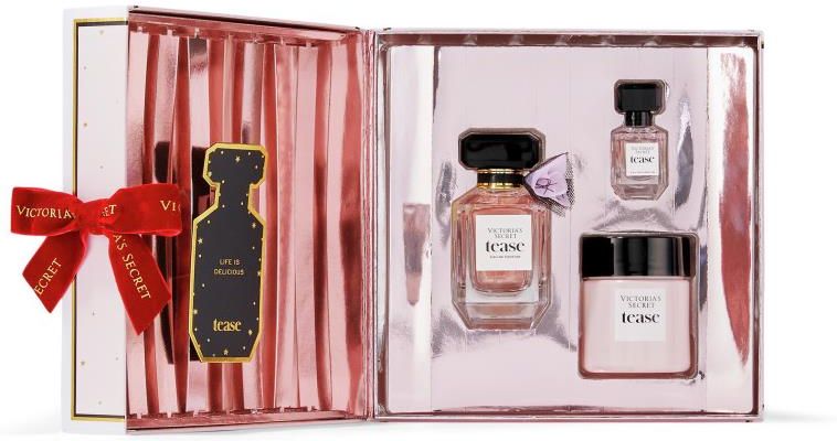 Premiera: 2018 rok Tease Eau de Parfum marki Victoria's Secret to kwiatowo - owocowe perfumy dla kobiet. Nuty zapachowe: nuta głowy: Gruszka, Liczi, Czerwone jabłko i Mandarynka; nuta serca: Gardenia, Jaśmin, Frezja, Magnolia i Cyklamen; nuta bazy: Wanilia, Bursztyn, Drzewo sandałowe, Piżmo, Benzoes i Czekolada.