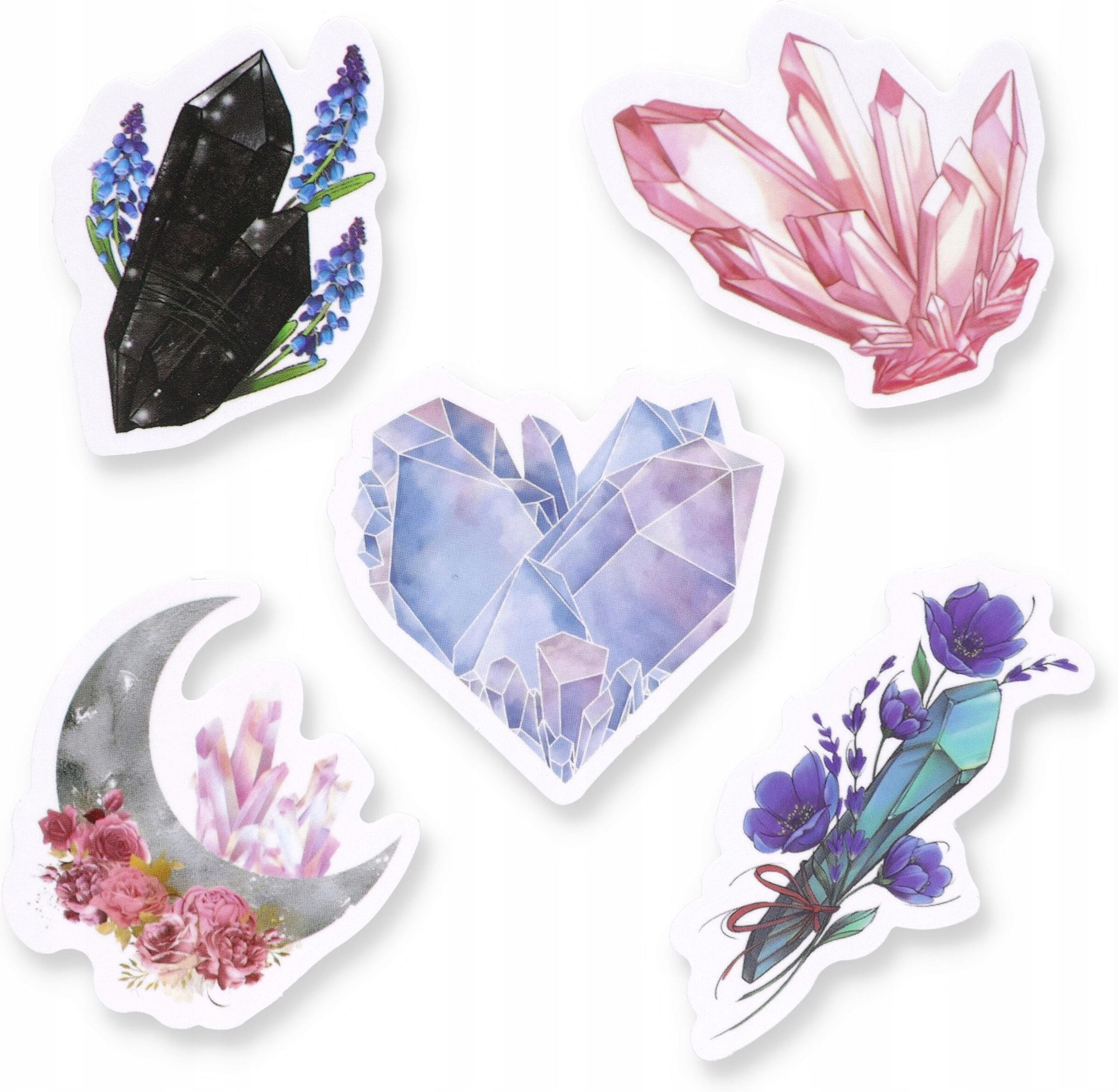 Naklejki z Kryształami Minerałami Kolorowy Komplet Naklejek Zestaw Naklejek 5 sztuk Specyfikacja Ilość: 5 naklejek (dobieranych losowo) Motyw: kryształy, minerały, księżyce, rośliny Wykończenie: lekki połysk Rozmiar: ok. 3-8 cm, zależnie od wzoru Kolorystyka: wielokolorowy Zestawy wysyłany losowo, …