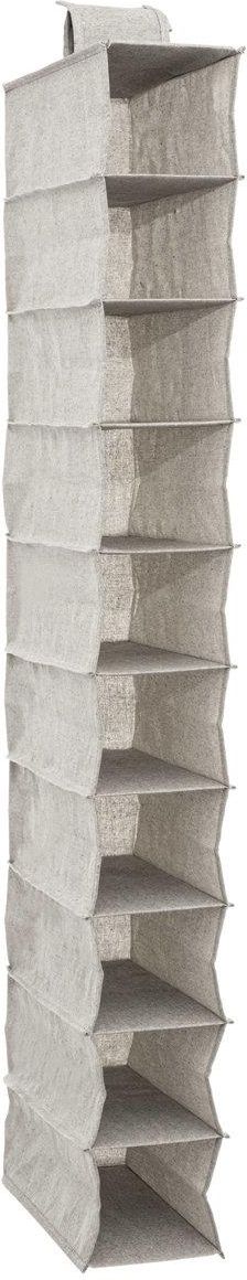 ORGANIZER do szafy NA BUTY 10 półek POJEMNY długi ✅Producent: 5five Simply Smart ✅Materiał dominujący: poliester długość (cm): 30 szerokość (cm): 15 wysokość (cm): 120 Pojemna półka tekstylna do szafy z 10 przegródkami na buty Organizer do przechowywania obuwia: organizer tekstylny zadba o porządek w szafie i ułatwi segregację odzieży. Powiększy ilość miejsca do przechowywania, tworząc dodatkowe półki. Poręczny rozmiar: pojemnik ma wymiary 15 x 30 x 120 cm, co sprawia, że znajdzie zastosowanie w wielu szafach. Przegródki: produkt liczy 10 przegródek, które umożliwiają segregację obuwia. Doskonale sprawdzi się także do przechowywania akcesoriów lub kosmetyków w łazience Wytrzymały materiał: organizer został wykonany z wytrzymałej tkaniny poliestrowej, odpornej na rozdarcia oraz uszkodzenia. Uniwersalna kolorystyka: pojemnik ma jasnoszary kolor, który jest neutralny i świetnie komponuje się z wieloma aranżacjami. Organizer do szafy na obuwie ORGA od francuskiej marki 5five Simple Smart to produkt, który sprawdzi się do przechowywania butów oraz drobnych akcesoriów. W łatwy sposób umożliwi wygodne i proste uporządkowanie szafy. Estetyczne wykonanie oraz stonowana kolorystyka będzie dobrze komponować się z wieloma stylizacjami wnętrzarskimi. Pojemnik tekstylny posiada10 przegródek dla łatwiejszego segregowania butów i akcesoriów. Kompaktowy rozmiar pasuje do wielu szaf i szuflad garderobianych. 66862