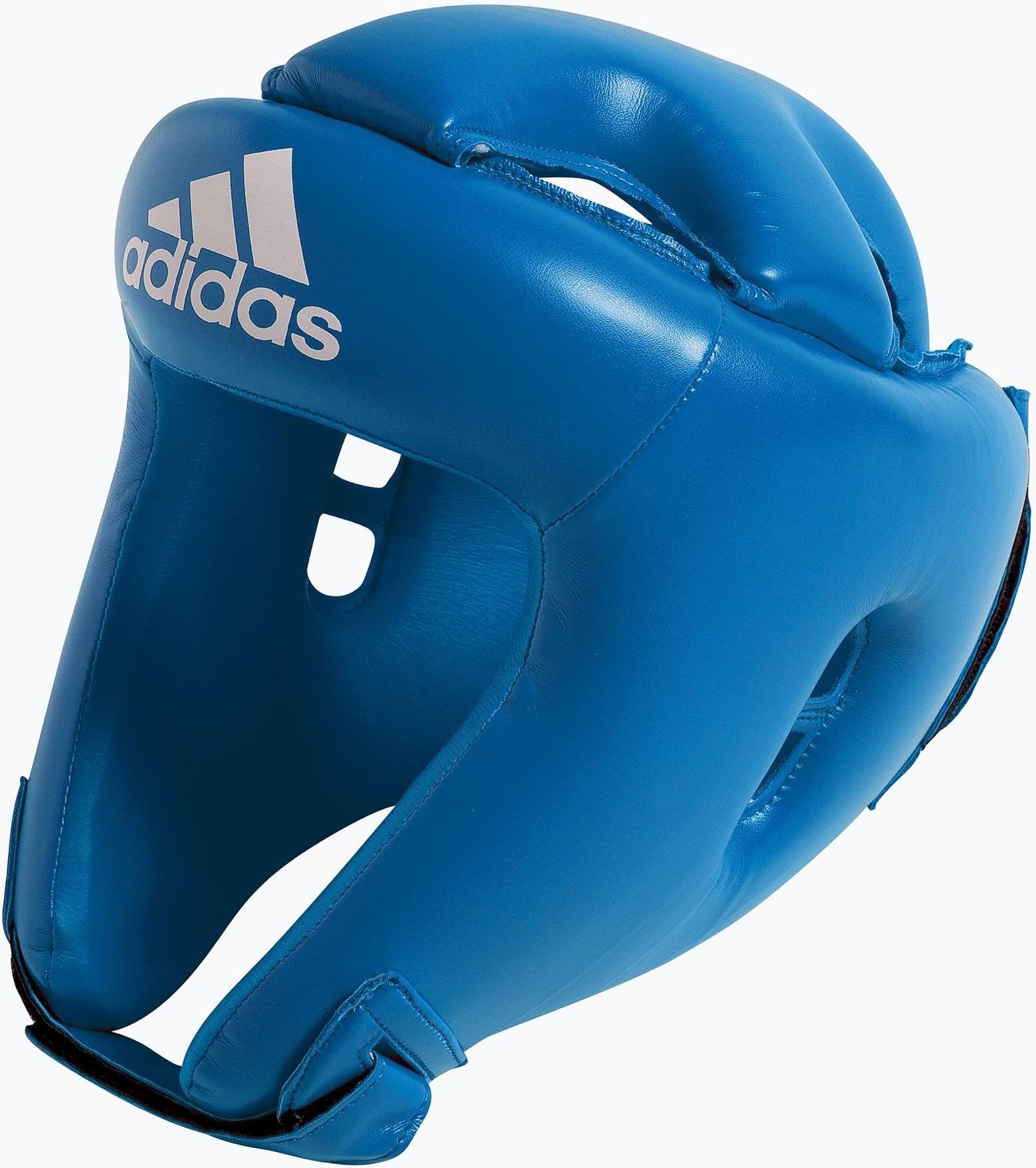 Ochraniacz głowy adidas wykonany ze specjalnego materiału PU3G z piankową warstwą ochronną. Kask posiada elastyczne taśmy z rzepem z tyłu głowy, które pozwalają na doskonałe dopasowanie. Dodatkowo została zastosowana regulacja podbródkowa.