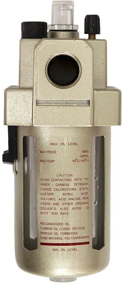 Naolejacz powietrza z gwintem 3/8" marki Airpress. Naoliwiacz zapewnia ochronę ruchomych elementów urządzenia dzięki odpowiedniemu dozowaniu oleju wraz ze sprężonym powietrzem.
