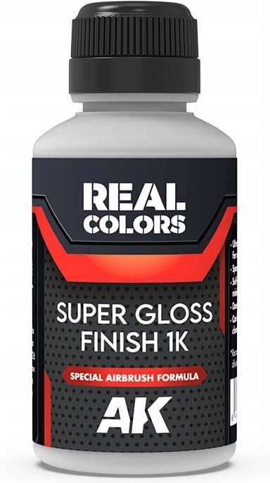 Super Gloss Finish 1K to jednowarstwowy lakier o wysokim połysku, specjalnie zaprojektowany do modeli modeli, który nie żółknie i nie niszczy kalkomanii. Lakiery 1K charakteryzują się szybkim schnięciem i wysokim połyskiem, gdyż proces ich odparowania jest bardzo szybki, co pozwala na całkowite wyschnięcie na powierzchni modelu w temperaturze pokojowej od 30 minut do jednej godziny. Jego użycie jest bardzo proste i można go nakładać na dowolną farbę: akrylową, lakierową lub rozpuszczalnikową. *Zalecany rozpuszczalnik dla Super Gloss Finish 1K: Rozcieńczalnik Real Colors (RC701/RC702).