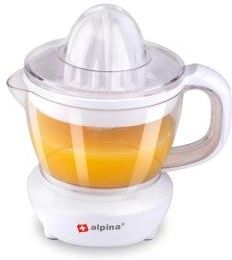 ALPINA Wyciskarka do cytrusów 700ml 25W biały ALPINA Wyciskarka do cytrusów 700ml 25W biały Świeżo wyciśnięty sok przygotujesz za pomocą wyciskarki do cytrusów o pojemności 0,7 l, 2 stożkach do wyciskania i 2 kierunkach obrotów. Szczegóły prasy do cytrusów Napięcie: 220-240 V, 50/60 Hz Klasa ochrony: II Moc: 25 W 2 Kierunki obrotów 2 Naciśnij stożki Pojemność kanistra: 0,7 l Odpinany dzbanek Dzbanek ma dużą pojemność 0,7 litra. To sprawia, że ​​jest wystarczająco duży, aby wycisnąć sok pomarańczowy dla 3-4 osób za jednym razem. Dzięki wyjmowanemu dzbanowi z uchwytem z łatwością napełnisz szklanki. Na dzbanku znajduje się wskaźnik rozmiaru, dzięki czemu możesz zobaczyć, ile soku już wycisnąłeś. Wysoka wydajność soku Ilość soku uzyskiwanego z owoców tą wyciskarką jest optymalna dzięki 2 różnym stożkom wyciskania i 2 kierunkom obrotów. Bardziej okrągły stożek jest przeznaczony do owoców cytrusowych, takich jak pomarańcze i grejpfruty, a bardziej spiczasty stożek do wyciskania cytryn i limonek. Prasa może obracać się w 2 kierunkach. W ten sposób uzyskasz jeszcze więcej soku z owoców.