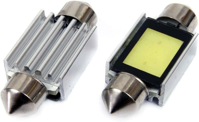 ŻARÓWKI LED VERTEX CANBUS 3xCOB Festoon 39mm White 12V Cena dot. 1kpl (2SZT) kod: 01640 Charakterystyka żarówek Wtyk: C5W Napięcie pracy: 12V/24V Barwa światła: zimna biała (ok 6000K) Typ diod: 3xCOB CANBUS: TAK Opis przedmiotu Zamiennik: C5W, C10W, SV8.5, Rurka 39mm. Zastosowanie Najpopularniejsza żarówka rurkowa, stosowana w wielu miejscach w samochodzie. Bardzo dobry stosunek ceny do jakoœci. Ośœwietlenie tablic rejestracyjnych, bagażnika, drzwi i schowków, ośœwietlenie wewnętrzne auta, podsufitka, oświetlenie nóg. Żarówki CANBUS dostosowane się do pracy z najnowszymi samochodami z szyną CAN i kontrolą spalonej żarówki. Dioda ta zachowuje się w samochodzie jak standardowa żarówka halogenowa. Nie mruga czy gaśœnie jak zwykłe żarówki. Zalety żarówek Led dłuższa żywotność w stosunku do żarówek standardowych niższy pobór prądu szybszy czas włączania/wyłączania odporność na wstrząsy łatwy montaż więcej żywych kolorów