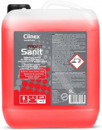 Koncentrat do mycia łazienek Clinex PROFIT SANIT 5L Producent: Clinex Kod produktu: 77-713 Właściwości produktu Skuteczny i niezawodny superkoncentrat do codziennej pielęgnacji urządzeń i pomieszczeń sanitarnych kwaso- i wodoodpornych (muszle klozetowe, pisuary, bidety, umywalki z porcelany i …