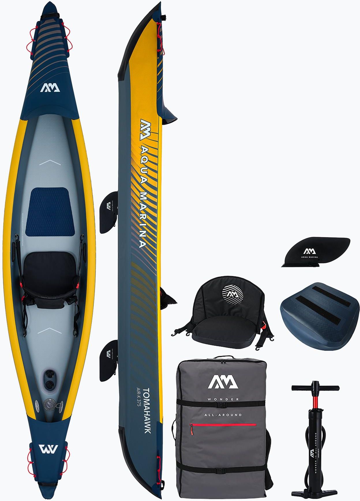 Kajak pompowany wysokociśnieniowy 1-osobowy Aqua Marina Tomahawk AIR-K 375 OS Kajak pompowany Aqua Marina Tomahawk Air-K 375 Nowy TOMAHAWK AIR-K to rewolucyjny nadmuchiwany kajak wykorzystujący dwuścienną tkaninę Drop Stitch Technology dla niesamowitej sztywności i wytrzymałości. Jest super lekki, …