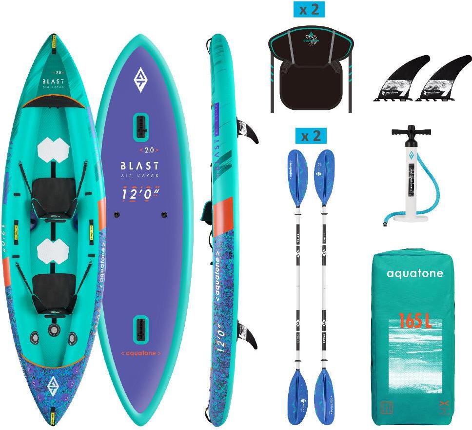 Kajak pompowany Aquatone Blast 12'0” to niesamowity kajak rekreacyjny, który pozwala cieszyć się wodnymi przygodami z rodziną i przyjaciółmi! Wyposażony w 2 zdejmowane siedzenia, 3 nadmuchiwane komory i technologię drop-stitch, kajak zapewnia bezpieczną jazdę w piękną letnią pogodę. Napompowany kajak jest niezwykle sztywny i zachowuje swój kształt. Ponadto posiada 2 zamykane otwory w dnie, które służą do odprowadzania wody, która dostaje się do wnętrza kajaka. Lekki i przenośny Ponieważ kajak jest dmuchany, nie będziesz musiał dźwigać go aż do brzegu – po spuszczeniu powietrza możesz włożyć kajak do bagażnika samochodu lub plecaka i nosić go na plecach. Za pomocą pompki dwustronnego działania możesz napompować kajak w ciągu kilku minut. Pompa jest dość łatwa w użyciu, więc nie powinieneś mieć z tym żadnego problemu. Wreszcie, przy udźwigu 195 kg, kajak jest wystarczająco wytrzymały, aby pomieścić 2 osoby. Małe poprawki, które przydadzą się zarówno w wodzie, jak i poza nią Aquatone Blast 12'0” to jednak nie tylko kajak. Ma wiele drobnych usprawnień, które pozwalają na wygodniejsze wiosłowanie i noszenie. Elastyczne linki bungee pozwalają przenosić lekki ładunek, którego nie chcesz zostawiać na brzegu (możesz też schować go pod częściową osłoną kokpitu). Antypoślizgowe podkładki na dnie kajaka zapobiegają ślizganiu się. Paski po bokach umożliwiają przymocowanie wioseł do kajaka, dzięki czemu nie wpadają do wody. Możesz również docenić 2 solidne uchwyty po bokach, które ułatwiają przenoszenie. Akcesoria w zestawie Kajak jest wyposażony we wszystko, czego możesz potrzebować podczas wodnych przygód – 2dwuczęściowe aluminiowe wiosła, pompkę wysokociśnieniową o podwójnym działaniu z manometrem, 2 siedzenia i 2 płetwy. Wszystko (w tym zwinięty kajak) zmieścisz w solidnym plecaku z wygodnymi szelkami. Wystarczy założyć plecak na plecy i ruszyć w drogę. Opis techniczny: Pompowany kajak dwuosobowy z akcesoriami Technologia „Drop stitch” (wewnętrzne włókna poliestrowe) 3-komorowa konstrukcja dla większego bezpieczeństwa 2 siedzenia zabezpieczone na miejscu za pomocą D-ringów i pasków na rzepy Częściowa osłona kokpitu, która służy również jako miejsce do przechowywania Boczne paski do mocowania wioseł do kajaka Podkładki antypoślizgowe 2 zintegrowane zawory spustowe 2 praktyczne uchwyty ułatwiające przenoszenie D-ringi po bokach do mocowania akcesoriów Elastyczne linki bungee z tyłu do przewożenia lekkich ładunków W zestawie kompletny zestaw akcesoriów Długość: 365 cm Szerokość: 103 cm Grubość: 27 cm Ilość komór powietrznych: 3 Maksymalna liczba pasażerów: 2 Nośność: 195 kg (zalecane obciążenie: 165 kg) Pojemność: 400 l Waga: 13 kg W zestawie 2 aluminiowe wiosła, 2 siedziska kajakowe, pompka ręczna, płetwy, plecak i zestaw naprawczy