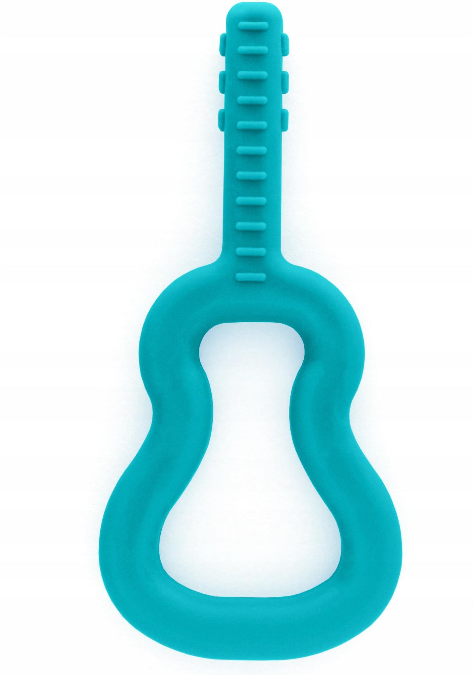 ARK's Guitar Chew Gryzak GITARA - TURKUSOWY - Miękki Gryzak Gitara z wypustami firmy ARK to narzędzie do żucia z trzema różnymi powierzchniami do żucia: jedna gładka, jedna z okrągłymi guzkami i jedna z prostokątnymi guzkami. Poszukiwacze zmysłów kochają dodatkowe bodźce sensoryczne wynikające z dodanej tekstury gryzaka. Jako narzędzie do terapii żywieniowej, tekstury te symulują odczucie rzeczywistego jedzenia, umożliwiając realistyczne odczucia bodźców. Mogą również pomóc w znieczuleniu jamy ustnej, zmniejszeniu awersji w jamie ustnej i przejściu osób z problemami sensorycznymi z przecieru na żywność stałą. Gryzak Gitara ma łatwą do trzymania pętlę w kształcie gitary i długie przedłużenie, aby dotrzeć do tylnych zębów trzonowych. Jest to bezpieczna alternatywa dla żucia rąk, koszulek, ołówków itp. Może być również używany jako narzędzie do terapii motorycznej jamy ustnej do ćwiczenia umiejętności gryzienia/żucia bez ryzyka zadławienia, budowania siły i stabilności szczęki oraz ćwiczenia mięśni ust. Proces gryzienia dla wielu osób jest również bardzo uspakajający co w przypadku dzieci jest bardzo istotne dla ich prawidłowego rozwoju. Podobnie jak wszystkie gryzaki ARK, Gitara dostępna jest w trzech kodowanych kolorami poziomach wytrzymałości: Soft / Standard / Bardzo Miękki ( Czerwony , Granatowy ) – zalecany do łagodnego żucia, dla osób z niskim napięciem w jamie ustnej lub osób o ograniczonej sile szczęki dopiero uczących się gryzienia i żucia. XT / Medium Firm/ Miękki ( Zielony ,Turkusowy ) – XT oznacza „Xtra Tough”. Są twardsze, ale nadal dość miękkie. Polecany dla umiarkowanych przeżuwaczy lub dla osób pracujących nad budowaniem siły szczęki mogą w końcu „przejść” z Bardzo Miękkiego gryzka do XT. XXT / Very Firm / Twardy ( Niebieski , Ciemno Zielony , Pomarańczowy ) – XXT oznacza „Xtra Xtra Tough”. Są one już bardziej twarde i zapewniają żuchwie największy opór. Żadne gryzaki do żucia nie są niezniszczalne, ale są one bardzo wytrzymałe, najbardziej wytrzymała opcja do gorliwego żucia dla najbardziej zapalonych przeżuwaczy. Wyprodukowano w USA. Klasa medyczna, zgodność z FDA Bez BPA, PVC. Nie zawiera ołowiu, ftalanów i lateksu. Można myć w zmywarce. Pamiętajmy- chociaż gryzaki do żucia są mocne i trwałe, żaden z nich nie jest niezniszczalny. Niektóre dzieci (szczególnie te z dużymi potrzebami doustnymi i intensywną, agresywną chęcią gryzienia/żucia) mogą być w stanie uszkodzić gryzak. Zalecany jest ciągły nadzór i wymiana gryzaka w razie potrzeby, gdy gryzak wykazuje oznaki uszkodzeń. Twardość gryzaków - w Skali: 1-6 Bardzo Miękki - 1 ( Czerwony ; Granatowy ) Miękki XT - 4 ( Zielony ; Turkusowy ) Twardy XXT - 6 ( Niebieski ; Ciemno Zielony ; Pomarańczowy ) Każdy z gryzaków dostępny jest na osobnej aukcji