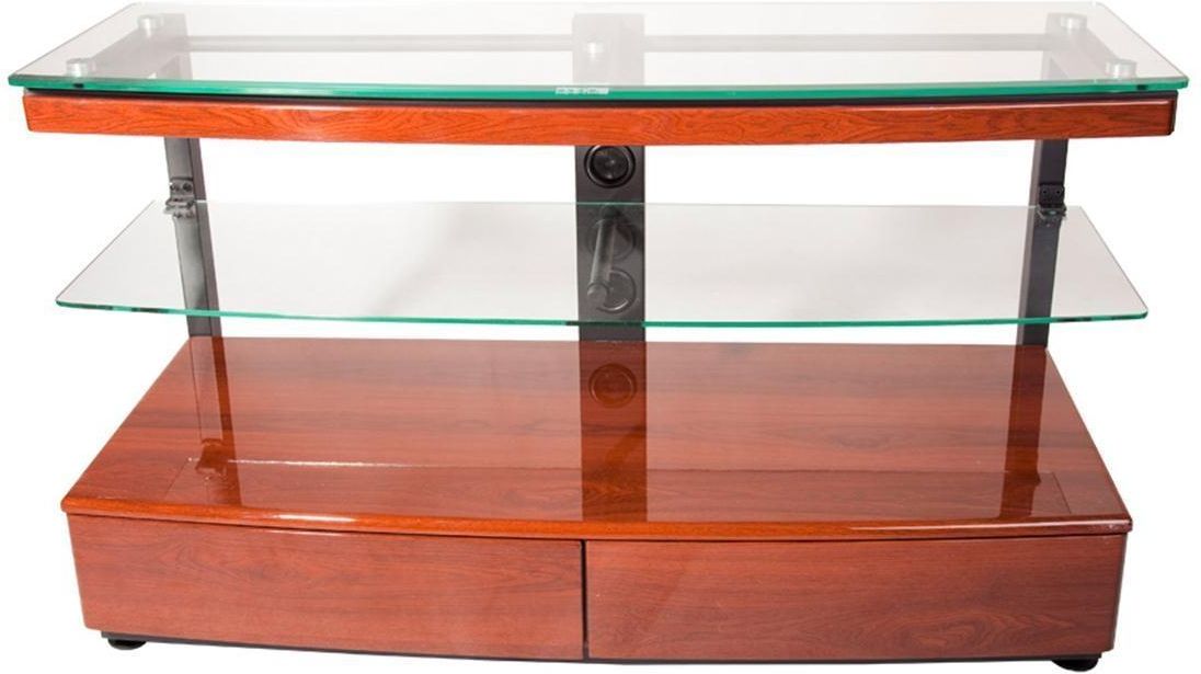 Stolik RTV Arkas VIRGO 1100 J o szerokości 110 cm. Blat oraz półka środkowa wykonane są ze szkła hartowanego, dzięki czemu zapewniają odpowiedni udźwig oraz dodają konstrukcji elegancji. W dolnej częsci stolika znajdują się 2 praktyczne szuflady.