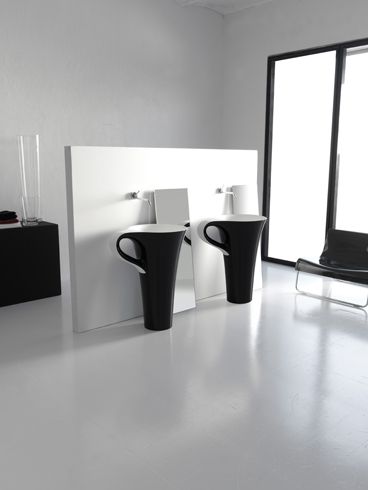 ArtCeram One Shot Cup umywalka stojąca czarno biała L3710 / OSL0040150 Opis produktu - wymiary: 70x50 cm, - wysokość 85 cm - waga: 27 kg - czarna z zewnątrz, biała wewnątrz W skład zestawu wchodzi: - umywalka w kształcie kubka - syfon - odpływ - materiał: (Livingtec) (w skład zestawu nie wchodzi …
