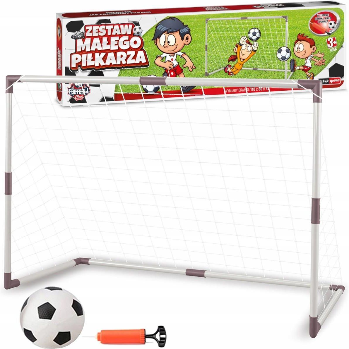 ZESTAW MAŁEGO PIŁKARZA DUŻA BRAMKA PIŁKARSKA 110x80 PIŁKA POMPKA Producent : Artyk Symbol : 135934 EAN: 5901811135934 Wiek : od 3 lat Płeć: Chłopcy, Dziewczynki CE + : Ostrzeżenie. Nieodpowiednie dla dzieci w wieku poniżej 3 lat ZESTAW PIŁKARSKI DLA DZIECI W zestawie: 1 duża bramka, piłka , pompka i siatka Łatwy montaż Wymiary bramki: 110 x 80 x 42 cm Zestaw piłkarski treningowy W zestawie bramka wraz z siatką, piłka gumowa oraz pompka. Zestaw piłkarski to prawdziwa atrakcja, przygotowana dla najmłodszych fanów piłki nożnej. Zestaw składa się z wysokiej jakości akcesoriów piłkarskich. Świetny pomysł dla dzieci, aby aktywnie spędzały czas na świeżym powietrzu. Wymiary opakowania: szer. 59,5 cm, wys. 18 cm, gł. 4,5 cm. Produkt nowy, oryginalnie zapakowany. Idealny na prezent!