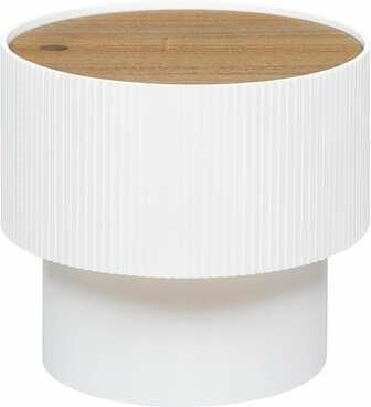 STOLIK KAWOWY ze schowkiem, okrągły biały Ø38,5cm Okrągły stolik kawowy ze schowkiem i drewnianym blatem, 38,5 x 35 cm - zyskaj funkcjonalność i styl w salonie. Producent: Atmosphera Materiał dominujący: MDF szerokość (cm): 38,5 wysokość (cm): 35 średnica (cm): 38,5 Okrągły stolik kawowy ze …