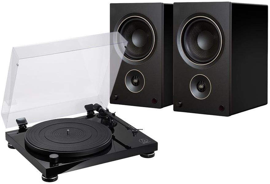 Audio-Technica AT-LPW50PB to w pełni manualny gramofon z napędem paskowym. Projektanci dopełnili wszelkich starań, aby nowa konstrukcja dostarczała wysoką jakość dźwięku z płyt winylowych. W urządzeniu wykorzystano antyrezonansową podstawę z płyty MDF, która wyróżnia się czarnym wykończeniem fortepianowym. Z kolei wbudowany sensor odpowiada za kontrolę silnika, co pozawala zapewnić wysoką precyzję prędkości obrotowej talerza (33 1/3 i 45 obr./min). Inżynierowie wyposażyli AT-LPW50PB w proste ramię z włókna węglowego z matowym wykończeniem i regulacją siły śledzenia. Do ramienia przymocowana została uniwersalna główka AT-HS4 z mocowaniem ½”, a także wkładka Dual MM AT-VM95E. Wkładki gramofonowe Audio-Techniki już od ponad 50 lat cieszą się uznaniem wśród melomanów i są owocem wieloletnich prac badawczo-rozwojowych, mających na celu dostarczenie jak najlepszej jakości dla miłośników krążków winylowych. Jednym z efektów tych badań jest właśnie wysokiej klasy wkładka AT-VM95E z igłą ze szlifem eliptycznym 0,3 x 0,7 mil. Wkładka jest kompatybilna z dowolnym zamiennikiem igły z serii VM95, dzięki czemu użytkownik może dopasować odpowiednią opcję bezpośrednio do swoich oczekiwań. Talerz gramofonu wykonano z aluminium do zagwarantowania maksymalnego poziomu tłumienia drgań. W modelu AT-LPW50PB zastosowano wbudowany przedwzmacniacz gramofonowy. Konstruktorzy sięgnęli również po podwójny kabel RCA, który umożliwia podłączenie gramofonu do urządzeń z lub bez dedykowanego przedwzmacniacza gramofonowego. Gramofon umieszczono na antywibracyjnych nóżkach, dzięki którym możliwe jest dokładne wypoziomowanie gramofonu.  Alpha AM5 to większa z dwóch nowych aktywnych kolumn głośnikowych PSB Speakers. Ten wciąż kompaktowy model wyróżnia się tym, nie potrzebujemy do niego dodatkowej elektroniki – wzmacniacza lub amplitunera. Użytkownik może strumieniować i słuchać ulubionej muzyki, odtwarzając ją bezprzewodowo poprzez Bluetooth aptX HD, wprost ze swojego mobilnego urządzenia – wystarczy sparować źródło z głośnikami i rozpocząć odtwarzanie. Kolumny można bez trudu także podłączyć np. do komputera czy telewizora, zapewniając przy tym mocny dźwięk stereo. Projektanci w obudowie Alpha AM5 (S x W x G: 170 x 290 x 240 mm) umieścili dwa przetworniki – 19-milimetrową jednostkę wysokotonową z aluminiową kopułką chłodzoną ferrofluidem i magnesem neodymowym oraz wspomagany przez układ bas-refleks 133-milimetrowy przetwornik nisko-średniotonowy ze stalowym koszem i gumowym zawieszeniem. Głośniki zasilane są wzmacniaczem o mocy 50 W x 2 (RMS) i umożliwiają odtwarzanie dźwięku z zakresu 55 Hz-20 kHz. Obudowa i przednia ścianka wykonana została z płyty MDF i wykończona jest winylową okleiną. Niezależnie od źródła dźwięku, zastosowane rozwiązania akustyczne zapewniają bogaty, emocjonujący, pełnozakresowy dźwięk. Nowe kolumny wyposażono w wejście optyczne, wejście analogowe 3,5 mm, przedwzmacniacz gramofonowy z wejściem RCA, dzięki czemu do AM5 można podłączyć gramofon bez konieczności stosowania dodatkowych komponentów. Z kolei użytkownicy oczekujący oszałamiającego basu – którego uzyskanie wspomaga wentylowana obudowa (bas-refleks) – mogą również skorzystać z wyjścia subwooferowego i podpiąć zewnętrzny subwoofer. Ponadto uniwersalna konstrukcja sprawia, że Alpha AM5 świetnie sprawdzą się na biurku, półce lub podstawce głośnikowe, pozwalając wypełnić domowe pomieszczenie wspaniałym dźwiękiem. Dodatkowo akustycznie przezroczysta, magnetycznie mocowana maskownica w jednej z dwóch wersji wykończenia (matowy czarny i matowy biały) sprawia, że AM5 z łatwością wtapia się w wystrój dowolnego wnętrza.