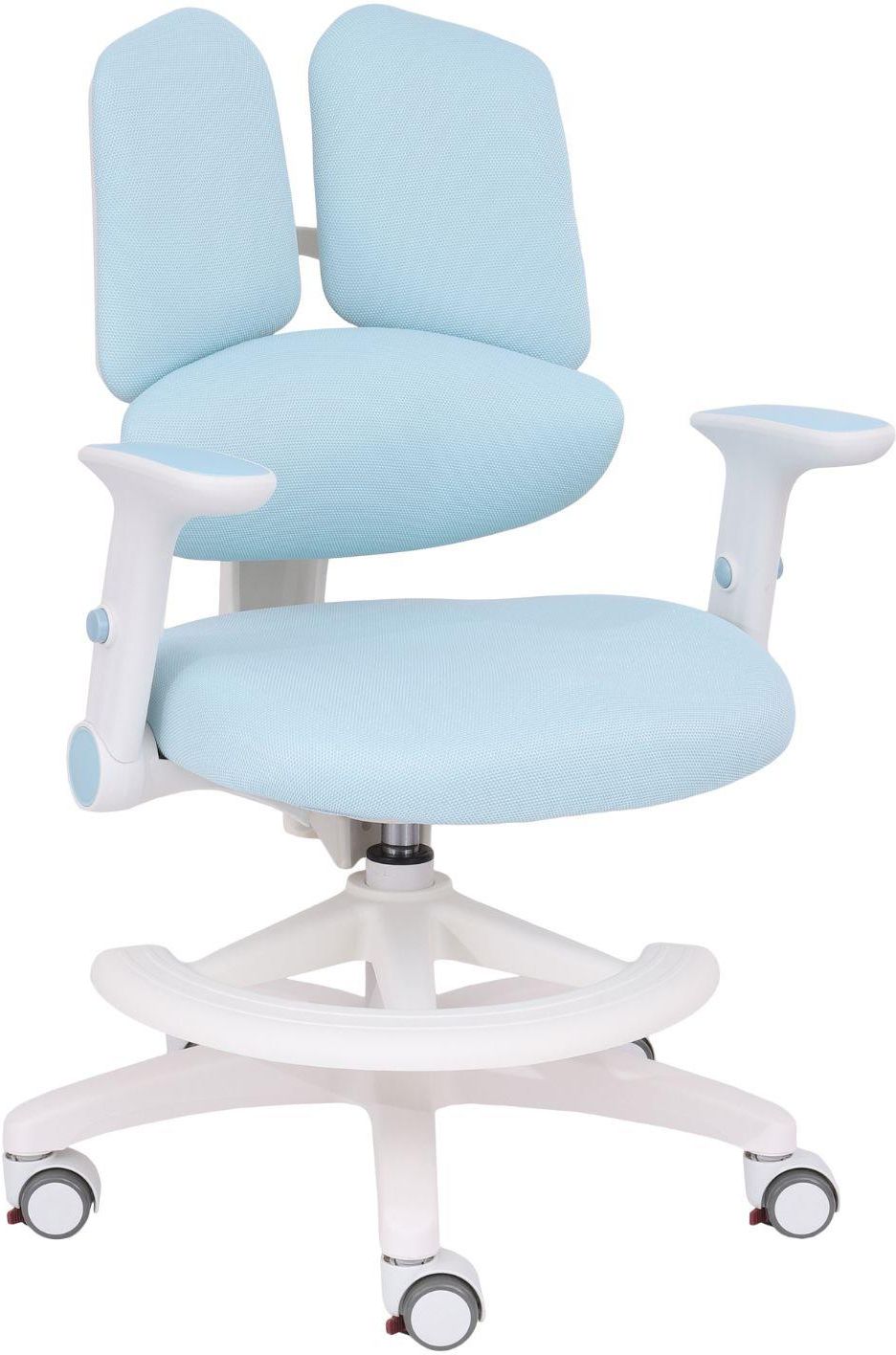 Krzesło dziecięce BunnyFit Blueto nowoczesne, ergonomiczne rozwiązanie zaprojektowane z myślą o zdrowej postawie dziecka, komforcie nauki i atrakcyjnym designie pasującym do każdego pokoju dziecięcego lub młodzieżowego.Niebieska kolorystyka i lekka forma sprawiają, że krzesło jest uniwersalne, estetyczne i ponadczasowe.BunnyFit Bluezostało stworzone tak, aby dopasowywać się do zmieniającego się wzrostu i potrzeb dziecka.Dzięki regulacji odległości oparcia od siedziska krzesło rośnie wraz z użytkownikiem, wspierając prawidłową postawę przez wiele lat.Zastosowane dynamiczne podparcie lędźwiowe z wyraźnie wyprofilowanym odcinkiem lędźwiowym aktywnie podąża za ruchami dziecka, zapewniając stałe wsparcie kręgosłupa podczas nauki, rysowania czy pracy przy biurku.Podłokietniki regulowane góra–dół, z możliwością ich całkowitego złożenia, pozwalają dopasować krzesło do indywidualnych preferencji lub wsunąć je swobodnie pod biurko.Regulacja wysokości siedziska (góra–dół) za pomocą podnośnika pneumatycznego i wygodnej dźwigni pod siedziskiem umożliwia szybkie dopasowanie krzesła do wzrostu dziecka i wysokości biurka.Wyraźnie profilowane siedzisko dba o wygodę nawet podczas dłuższego siedzenia.Regulowany podnóżek – możliwość zmiany wysokości oraz kąta nachylenia zapewnia prawidłowe ułożenie nóg i dodatkową stabilność, szczególnie dla młodszych dzieci.Stabilna podstawa z tworzywa gwarantuje trwałość i odporność na codzienne użytkowanie.BunnyFit Blue wyposażono w miękkie kółka przeznaczone do powierzchni twardych, które nie rysują podłogi.Dodatkowym atutem jest manualny hamulec kółek – krzesło pozostaje nieruchome, gdy dziecko na nim siedzi, co zwiększa bezpieczeństwo i koncentrację podczas nauki.W zestawie znajduje się pokrowiec na siedzisko, który ułatwia utrzymanie krzesła w czystości i sprawia, że BunnyFit doskonale sprawdza się w intensywnie użytkowanych przestrzeniach dziecięcych.BunnyFit Blue to idealny wybór dla rodziców, którzy szukają krzesła łączącego ergonomię, bezpieczeństwo, regulację i nowoczesny wygląd. To inwestycja w zdrową postawę i wygodę dziecka na lata.Wymiary:Wymiary siedziska: szerokość 45 cm, głębokość 32 - 41 cmFotel objęty jest 2 letnim programem gwarancyjnym producenta, świadczonym w systemie od drzwi do drzwi dla Państwa pełnego komfortu.Produkt dostarczymy do Państwa BEZPŁATNIE pod wskazany adres na terenie całego kraju.Co WAŻNE: zgodnie z prawem i naszymregulaminemmają Państwo pełne prawo do zwrotu nieużywanych towarów, jeśli nie spełnią one Państwa oczekiwań.