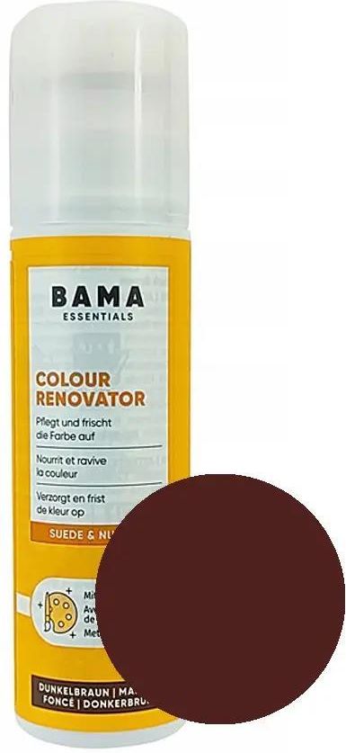 Ciemnobrązowy renowator, pasta w płynie do zamszu nubuku, Colour Renovator Essentials Bama, 75 ml to pasta w płynie w kolorze koniaku do zamszu, nubuku, skóry welurowej. Pata do butów S11 zawiera formułę, która zmiękcza oraz odświeża kolor obuwia oraz akcesoriów z zamszu i nubuku.