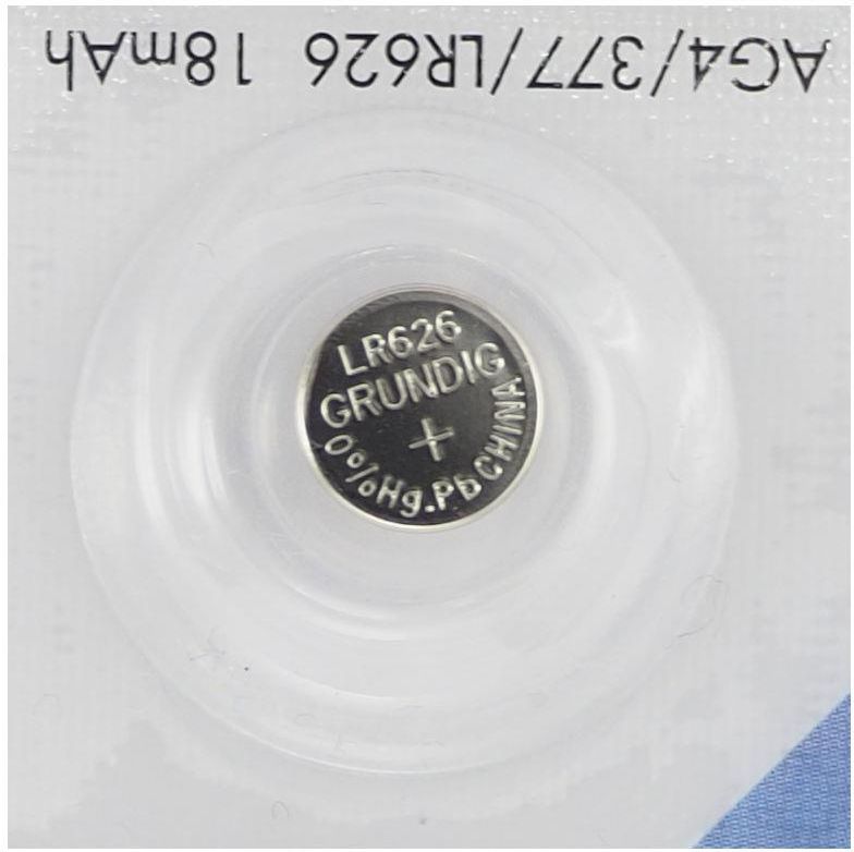 1x Bateria alkaliczna LR626 Oznaczenia : AG4 377 LR626 SR626SW Producent : GRUNDIG Pojemność : 18mAh Seria : POWER +++ Wymiary baterii to: Średnica: około 6,8 mm Grubość: około 2,6 mm Zdjęcie realne.