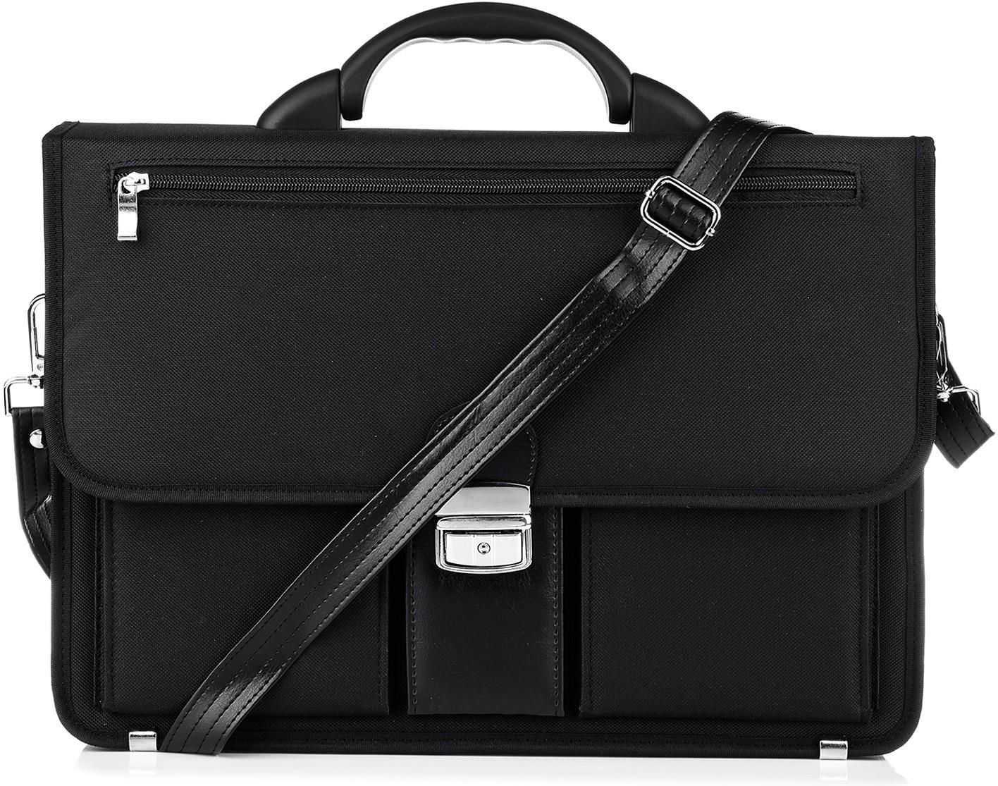 Kolory czarny Materiał Tworzywo sztuczne Wielkość Duża, mieszcząca A4 Fason Aktówka Kolor okuć Srebrny Zapięcie Klapa na zapinkę i kluczyk Klapa Tak Kieszenie zewnętrzne 4 Kieszenie wewnętrzne 3 na długopisy, 4 na wizytówki, 1 na telefon/klucze Dno Usztywnione Liczba komór 5 Długość paska (cm) …