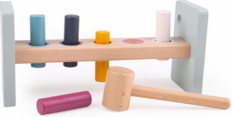 Dzieci mogą nauczyć się rozpoznawać kolory poprzez wbijanie kolorowych szpilek. Po wbiciu wszystkich wystarczy odwrócić zabawkę i można zacząć od nowa! Idealna gra do rozwijania koordynacji ręka-oko i umiejętności rozwiązywania problemów.Ta zabawka do wbijania ma zaokrąglone krawędzie dla bezpieczeństwa dzieci, a także łatwy do trzymania młotek. Dzięki drewnianej zabawce dzieci nabiorą pewności siebie. Jest zgodna z europejskimi normami bezpieczeństwa, pomalowana nietoksycznymi farbami, które są bezpieczne dla dzieci.Główne cechy:składa się z 7 elementów100% drewno FSCrozwija koordynację ręka-oko Następnie odwracają całość i zaczynają od nowa! Idealna do rozwijania koordynacji ręka-oko i umiejętności rozwiązywania problemów, ta drewniana ławka z młotkiem jest wyposażona w solidny młotek i ma delikatnie zakrzywione krawędzie. Maluchy mogą zacząć zabawę z drewnianym młotkiem powoli i nabierać prędkości w miarę nabierania pewności siebie. Jest zgodna z obowiązującymi europejskimi normami bezpieczeństwa i pokryta nietoksycznymi, przyjaznymi dla dzieci farbami. 12 cm wys. 26,4 cm szer. 12+ miesięcy Młotek do wbijania pinezek Bigjigs Toys ma zaokrąglone krawędzie dla bezpieczeństwa dzieci. Młotek jest dobrze wyprofilowany, dzięki czemu małe rączki mogą go dobrze chwycić. Idealna zabawa rozwijająca koordynację ręka-oko. Po wbiciu wszystkich pinezek należy odwrócić zabawkę i zacząć zabawę od nowa. Wykonana z wysokiej jakości materiałów. Jest zgodna z aktualnymi europejskimi normami bezpieczeństwa. Dzięki temu naturalnemu i kolorowemu drewnianemu młotkowi dzieci mogą bawić się z łatwością. Kolorowe kołki zatrzaskują się na miejscu, a następnie wystarczy obrócić młotek i można bawić się dalej! Młotek jest łatwy do trzymania, zabawka ma zaokrąglone krawędzie. Pomaga w rozwoju zręczności i koordynacji. W opakowaniu 7 sztuk. Angielska marka Bigjigs została założona w 1985 roku i początkowo produkowała tylko drewniane puzzle. Właściciele robili wszystko ręcznie i z miłością w małym domku ogrodowym i sprzedawali swoje produkty na rynku. Zadowoleni klienci zmotywowali producenta do wymyślenia wielu innych pomysłów i poszerzenia asortymentu drewnianych zabawek, a firma rozrosła się.
