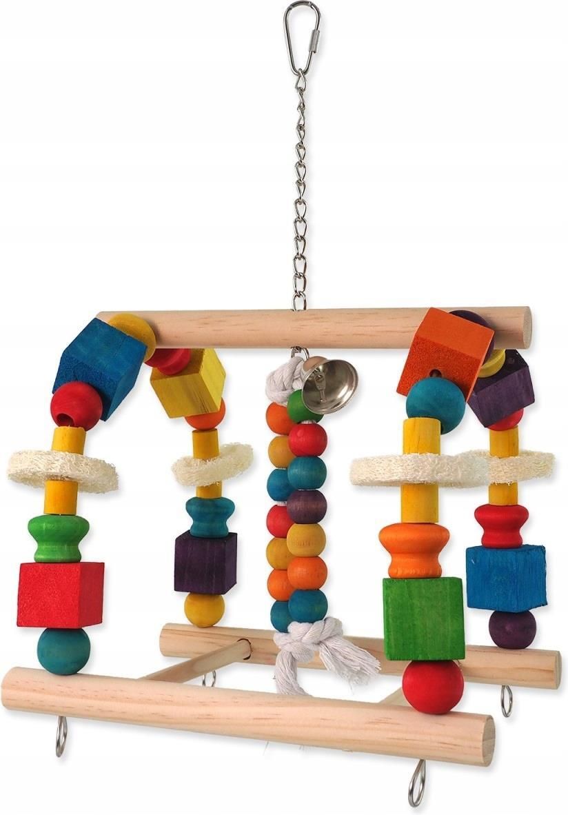Bird Jewel kolorowa drewniana zabawka dla ptaków 40x23 cm. Zawieszana, drewniana zabawka dla ptaków. Solidna i bezpieczna zabawka wykonana z drewna i metalu, kolorowa. Przeznaczona przede wszystkim dla małych ptaków ozdobnych. Zabawki dostarczają naszym pupilom dużo dobrej zabawy i aktywności fizycznej, potrzebnej do rozwoju i zdrowia ptaka. bezpieczna dla zwierzęcia solidne wykonanie zapobiega nudzie Wymiary podane przez producenta: 40x23 cm.
