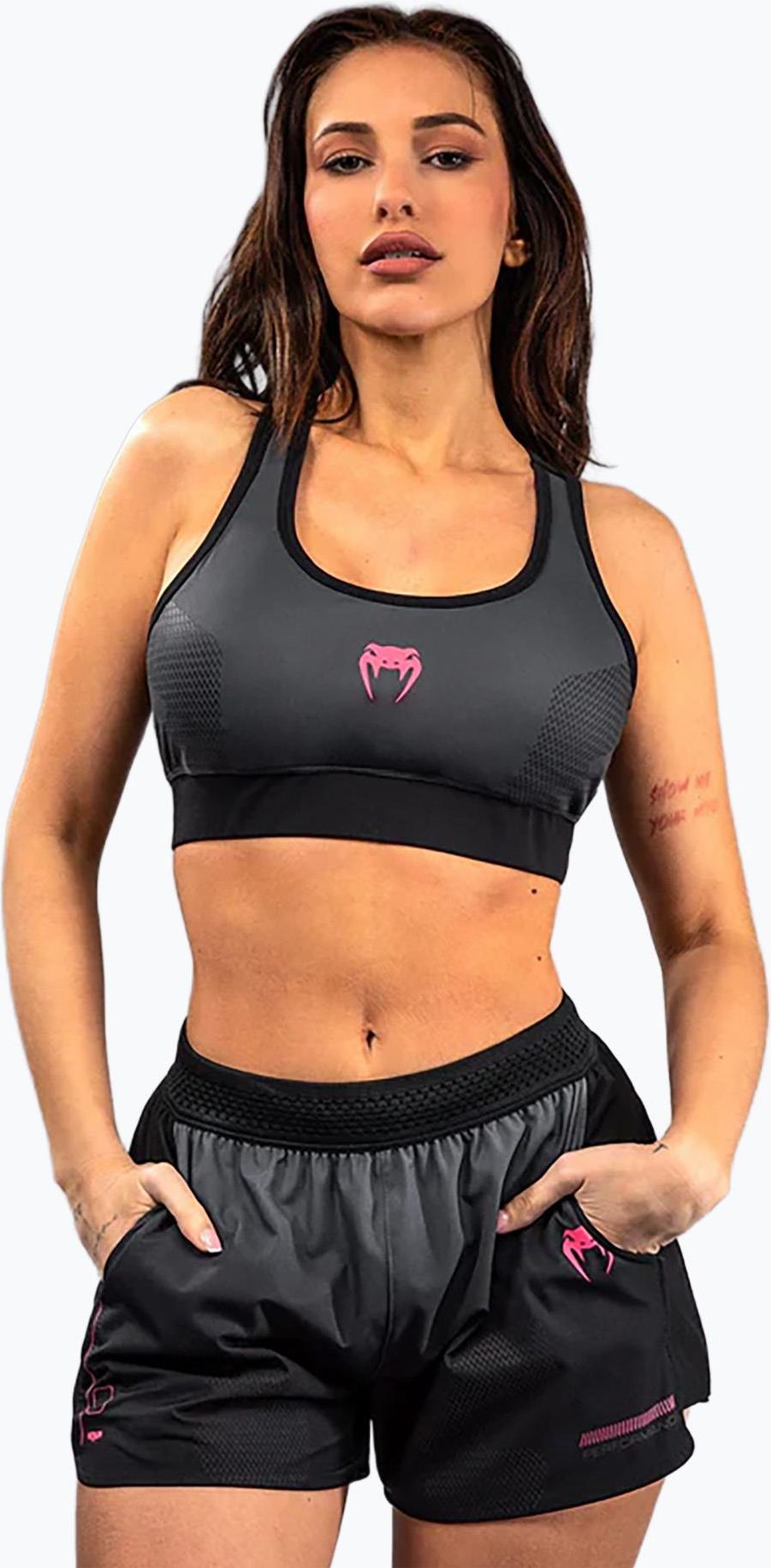 Biustonosz trenigowy Venum Tactical XT black/storm grey to zaawansowany technicznie produkt, który łączy wygodę z funkcjonalnością, idealny dla osób aktywnych fizycznie. Składa się w 90% z poliestru i w 10% z elastanu, co gwarantuje elastyczność oraz dopasowanie do ciała podczas intensywnych treningów. Materiał ten zapewnia również wysoką odporność na rozciąganie i trwałość, co jest kluczowe podczas regularnego użytkowania. Wsparcie i komfort Wsparcie oferowane przez biustonosz trenigowy Venum Tactical XT jest określane jako umiarkowane. Oznacza to, że jest on odpowiedni do różnorodnych aktywności fizycznych, zapewniając jednocześnie odpowiednią stabilizację i komfort. Konstrukcja biustonosza jest przemyślana tak, aby zapewniać wsparcie bez ograniczania swobody ruchów, co jest istotne podczas dynamicznych ćwiczeń. Wyjmowana wkładka Produkt wyposażony jest w wyjmowaną wkładkę, co pozwala na dodatkową personalizację i dopasowanie do indywidualnych potrzeb użytkownika. Możliwość usunięcia wkładki umożliwia dostosowanie poziomu wsparcia oraz wygody, a także ułatwia pielęgnację i czyszczenie biustonosza. Jest to praktyczne rozwiązanie dla osób, które cenią sobie elastyczność użytkowania. Konstrukcja i marka Biustonosz nie posiada bezszwowej konstrukcji, co oznacza, że może posiadać szwy, które jednak są zaprojektowane tak, aby minimalizować ryzyko podrażnień skóry. Marka Venum, znana z produkcji sprzętu sportowego, gwarantuje wysoką jakość wykonania i długotrwałość swoich produktów. Produkty tej marki są często wybierane przez sportowców, co świadczy o ich niezawodności.