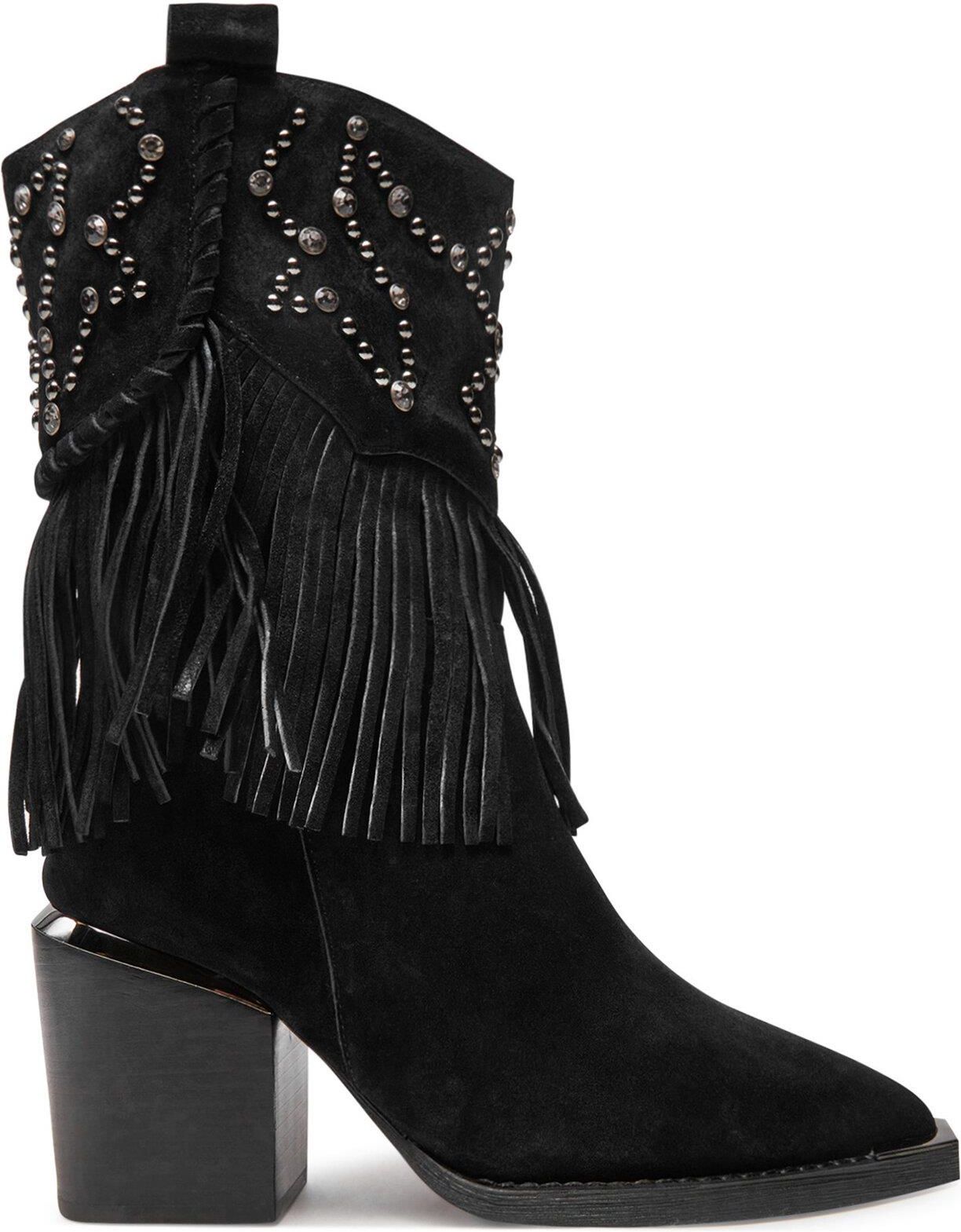 Kowbojki Alma En Pena to idealny wybór dla kobiet ceniących wyrazisty styl i oryginalność. Wykonane z wysokiej jakości zamszu, z łatwą wsuwaną konstrukcją i szpiczastym noskiem, dodają sylwetce elegancji i charakteru. Stabilny słupek zapewnia komfort noszenia, a skórzana wkładka dba o dobrą cyrkulację powietrza przez cały dzień. Kowbojki ozdobione subtelnymi frędzlami i cyrkoniami przyciągają wzrok, a dwie pętelki po bokach ułatwiają zakładanie.