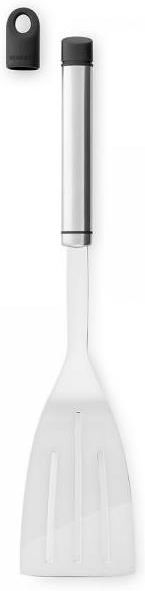 Duża, stalowa łopatka do przewracania i wyjmowania smażonych potraw, to kolejne ciekawe i praktyczne akcesorium marki Brabantia. Posiada specjalne otwory, które odsączają nadmiar tłuszczu. Wyprofilowany kształt ułatwia przewracanie smażonych produktów. Jej konstrukcja jest niezwykle higieniczna, bez spoin i zagłębień. Wykonana jest ze stali nierdzewnej, rękojeść ze stali matowej, zakończona grafitową końcówką i otworem umożliwiającym powieszenie na relingu. Łopatkę można myć w zmywarce. Seria Accent daje Ci możliwość dopasowania koloru końcówek do wystroju Twojej kuchni. W każdej chwili możesz dokupić czerwone lub miętowe końcówki i odświeżyć swoją kuchnię! Kolekcja: Accent Wymiary : długość - 36 cm szerokość - 7,5 cm głębokość - 5,5 cm Możliwość mycia w zmywarce: tak