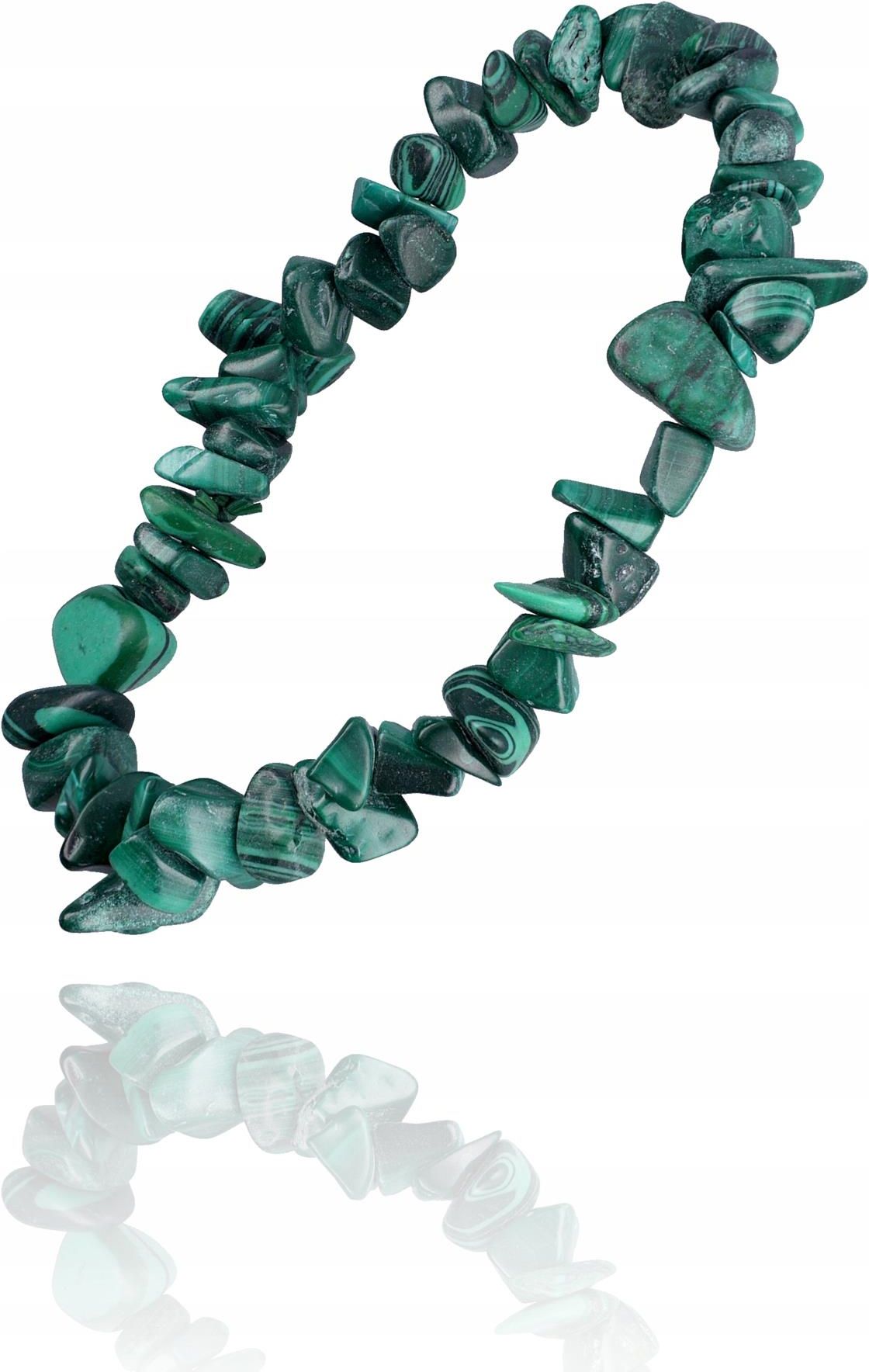 Bransoletka Malachit na gumce Praktyczna bransoletka Prezentujemy piękną bransoletkę wykonaną z drobnych, nieregularnych kamieni naturalnych typu sieczka, z kamienia malachitu. Ta wyjątkowa biżuteria łączy w sobie surowość natury z eleganckim wyglądem, dodając Twojej stylizacji wyrazistego charakteru. Bransoletka jest osadzona na elastycznej gumce, co zapewnia wygodne dopasowanie do nadgarstka, łatwość nakładania i wygodę noszenia. Informacje Rozmiar: około 16 cm Kamień: malachit Kolor: zielony Każda bransoletka jest inna ze względu na właściwości i kształty kamieni. Bransoletka wybierana intuicyjnie. Łączenie: gumka wiązana na supełek. Supeł może być widoczny. Bransoletkę otrzymasz na eleganckiej zielonej tekturce ze złoconym logo. Kolory kamieni mogą różnić się od tych na zdjęciu, ze względu na światło studyjne i obróbkę zdjęć. Wśród kamieni mogą znaleźć się pojedyncze kamienie innego minerału. Odkryj Malachit Malachit to minerał o głębokiej, intensywnej zieleni, który od wieków uważany jest za kamień luksusu i ekskluzywności. Jego unikalna, pasmowa struktura, w której różne odcienie zieleni tworzą hipnotyzujące wzory, sprawia, że malachit jest niezwykle ceniony zarówno w jubilerstwie, jak i w sztuce dekoracyjnej. Każdy kawałek malachitu jest wyjątkowy, z niepowtarzalnymi, naturalnymi wzorami, które przypominają pejzaże lub krajobrazy, co czyni go kamieniem niezwykle pożądanym i rzadkim. Malachit jest symbolem bogactwa, władzy i transformacji. W starożytnych kulturach, takich jak Egipt czy Grecja, używano go jako amuletu ochronnego oraz materiału do tworzenia biżuterii, ozdób i rzeźb. Jego złożony proces powstawania i trudność w wydobyciu przyczyniają się do jego ekskluzywności. Bransoletka z naturalnego kamienia Podaruj sobie lub bliskiej osobie ten piękny dodatek, który łączy w sobie naturalne piękno kamieni z funkcjonalnością i wygodą. Bransoletka z kamieni naturalnych to nie tylko elegancka biżuteria, ale także talizman, który wnosi do życia harmonię i ochronę. Idealna na różne okazje Ta bransoletka jest idealnym dodatkiem zarówno na co dzień, jak i na specjalne okazje. Dzięki swojej uniwersalności i elegancji doskonale komponuje się z różnymi stylami – od casualowych po bardziej formalne. Minimalistyczny design sprawia, że będzie pasować do każdego stroju. Dobieraj kolory i twórz zestawienia Bransoletka sieczka to idealna biżuteria do tworzenia zestawów! W zestawieniu po 2, 3, czy nawet 4 sztuki, bransoletki tworzą na ręku piękną gamę kolorów. Wybieraj dowolnie - kontrastowo lub spójnie. Wyraź swój styl bransoletkami!