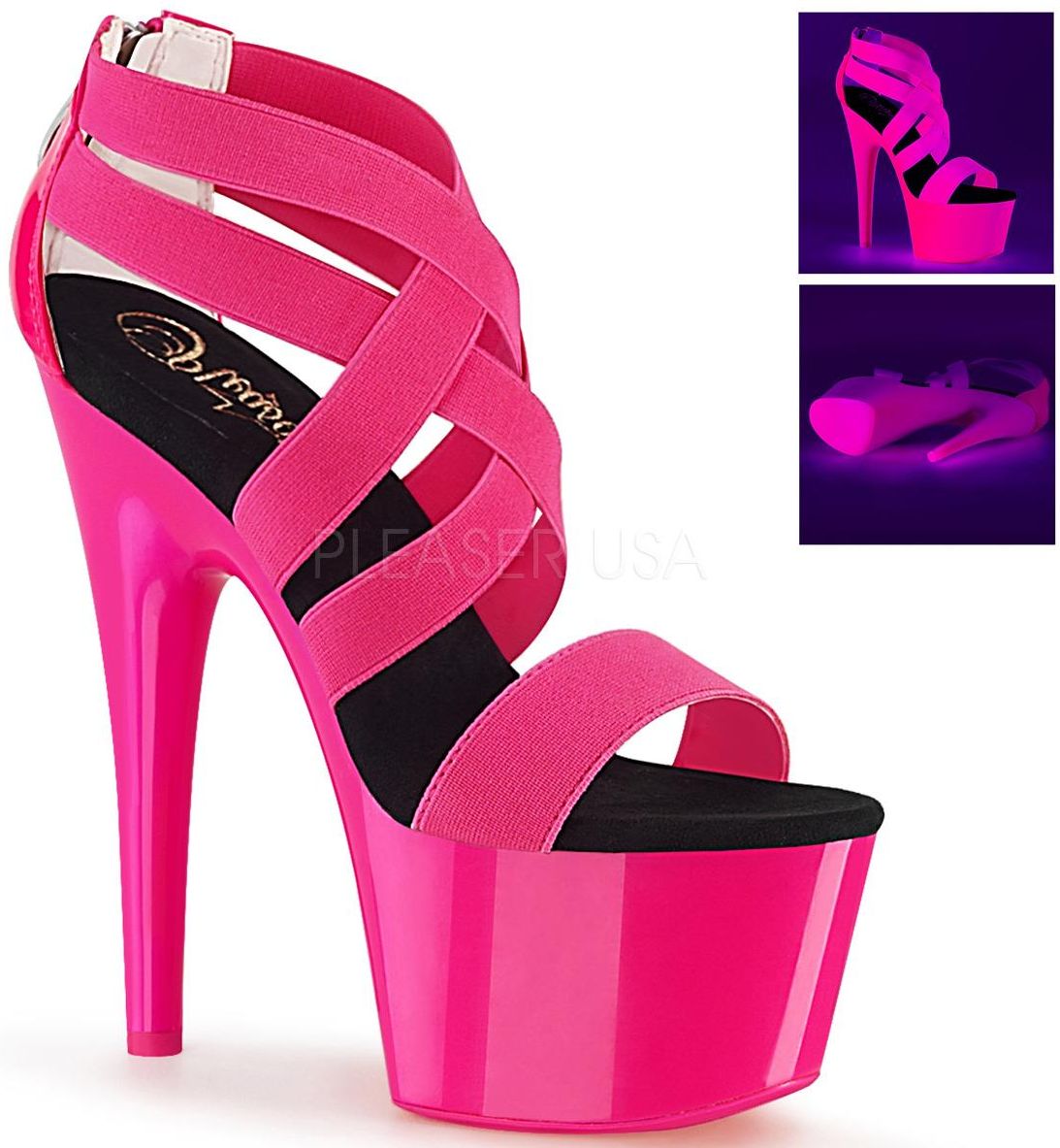 7 (178mm) Heel, 2 3/4 (70mm) Platform Criss Cross Sandal Featuring Entire Upper, Platform Bottom and Outsole/Toplift UV Blacklight Reactive