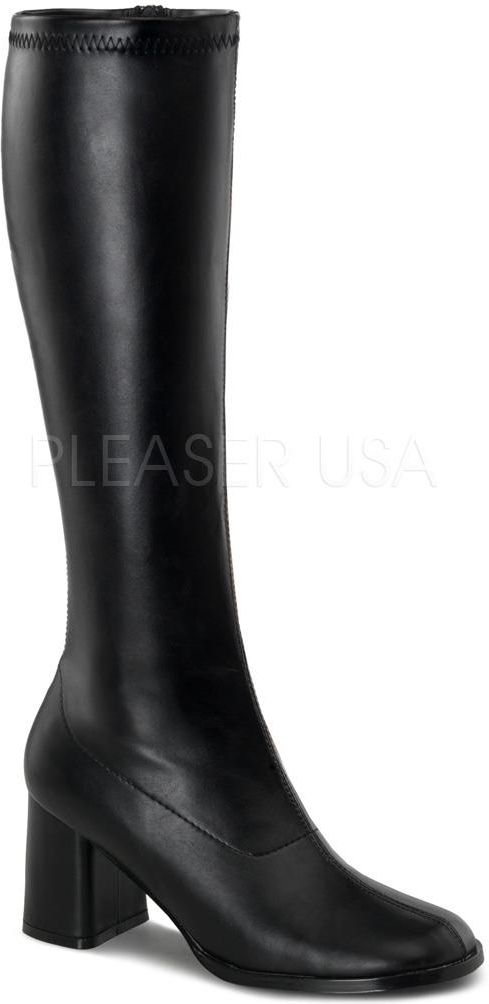 3 Block Heel Wide Width,Black PU,Plus Size ST Boot,Side Zip full inner side zipper