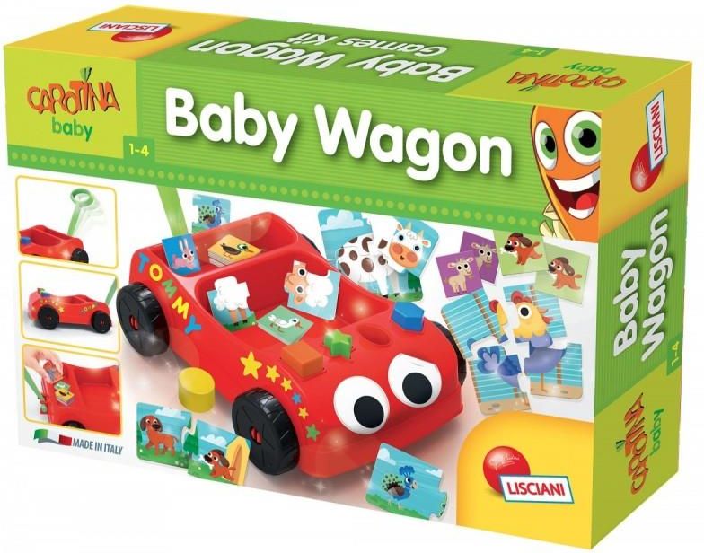 Zestaw Liscianigiochi Carotina Baby Wagon. Zróżnicowana zabawa dla dobra maluszka! Doskonale przemyślana zabawka edukacyjna Wózeczek pełen zróżnicowanyh gier Wysoka jakość wykonania elementów Wszechstronnie rozwijająca rozgrywka Edukacja poprzez zabawę! Zestaw Baby Wagon z serii Carotina Baby to fenomenalnie zaprojektowana zabawka edukacyjna, która przyniesie masę radości wszystkim kreatywnym i ciekawym świata maluszkom. Komplet obejmuje wesoły, czterokołowy wózeczek, cztery plastikowe klocuszki, kary do gry pamięiowej oraz osiem czteroelementowych puzzli. Baby Wagon zapewni dziecku całą masę zróżnicowanej i wciągającej zabawy. To doskonały pomysł na prezent! *Zdjęcie o charakterze poglądowym. Co za radość! Ogromną zaletą Carolina Baby Wagon jest jego uniwersalność i wszechstronność - zróżnicowany wybór gier pozwoli na kompleksowy rozwój dziecka. Maluszek może szkolić swoją pamięć, ćwiczyć funkcje motoryczne, dać upust swojej kreatywności i wiele więcej! Na dodatek sam wózeczek zachęca do nauki chodzenia! Baby Wagon został przygotowany z ogromną dbałością o najmniejsze szczegóły - każdy element pozostaje wyjątkowo trwały. Dodatkowe informacje: Zawartość opakowania: 8 czteroelementowych puzzli 32 karty do gry pamięciowej 32 karty samokorygujące 4 plastikowe kształty Plastikowy wózek Instrukcja