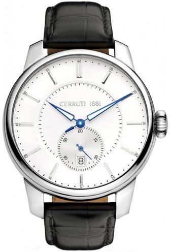 Cerruti CRA29405 to wyjątkowy zegarek męski pochodzący z kolekcji Maniago, który charakteryzuje się prostotą i minimalizmem. Klasyczna stalowa koperta została połączona z ciemno-brązowym paskiem wykonanym z wysokiej jakości skóry. Do zabezpieczenia dokładnego kwarcowego mechanizmu i tarczy użyto odpornego na stłuczenia szkła mineralnego. Zegarek wyposażony został w datownik dni miesiąca, a sekundnik otrzymał swoją własną, mniejszą tarczę. Komponujące się indeksy współgrają z jasną tarczą, a przy tym pozostają wyraźne i czytelne. Wodoszczelność tego modelu określono jako 50 metrów, co oznacza, że nie musimy zdejmować go z ręki podczas pływania.